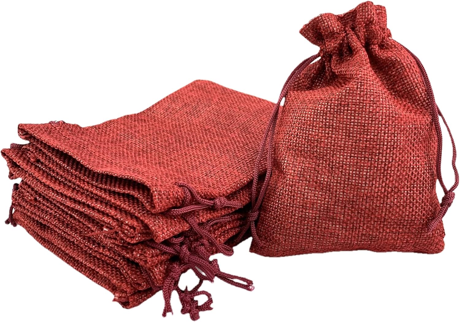 - Palmhomee Pack of 25 Burlap Gift Bags with Drawstring Linen Jewelry Pouches Wedding Hessian Jute Bags for Birthday Jewelry and Treat Pouches Party Wedding Favors Gift Art and DIY Craft (4x5.6 Inch, Burgundy)