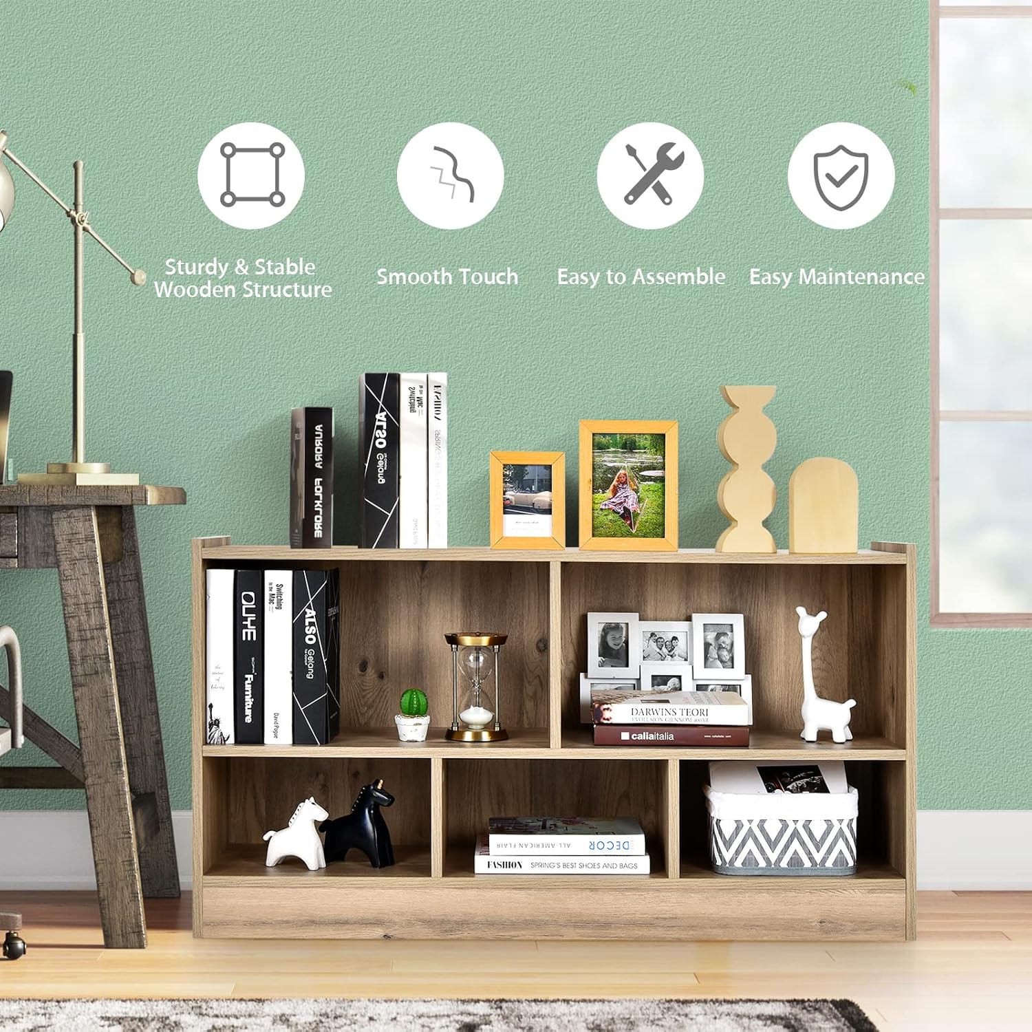Tangkula 5 Cube Bookcase, 2 Tier Wooden Storage Open Bookshelf, Multipurpose Display Storage Cabinet for Living Room, Bedroom, Hallway, Kid's Playroom, Reading Nook (Natural)