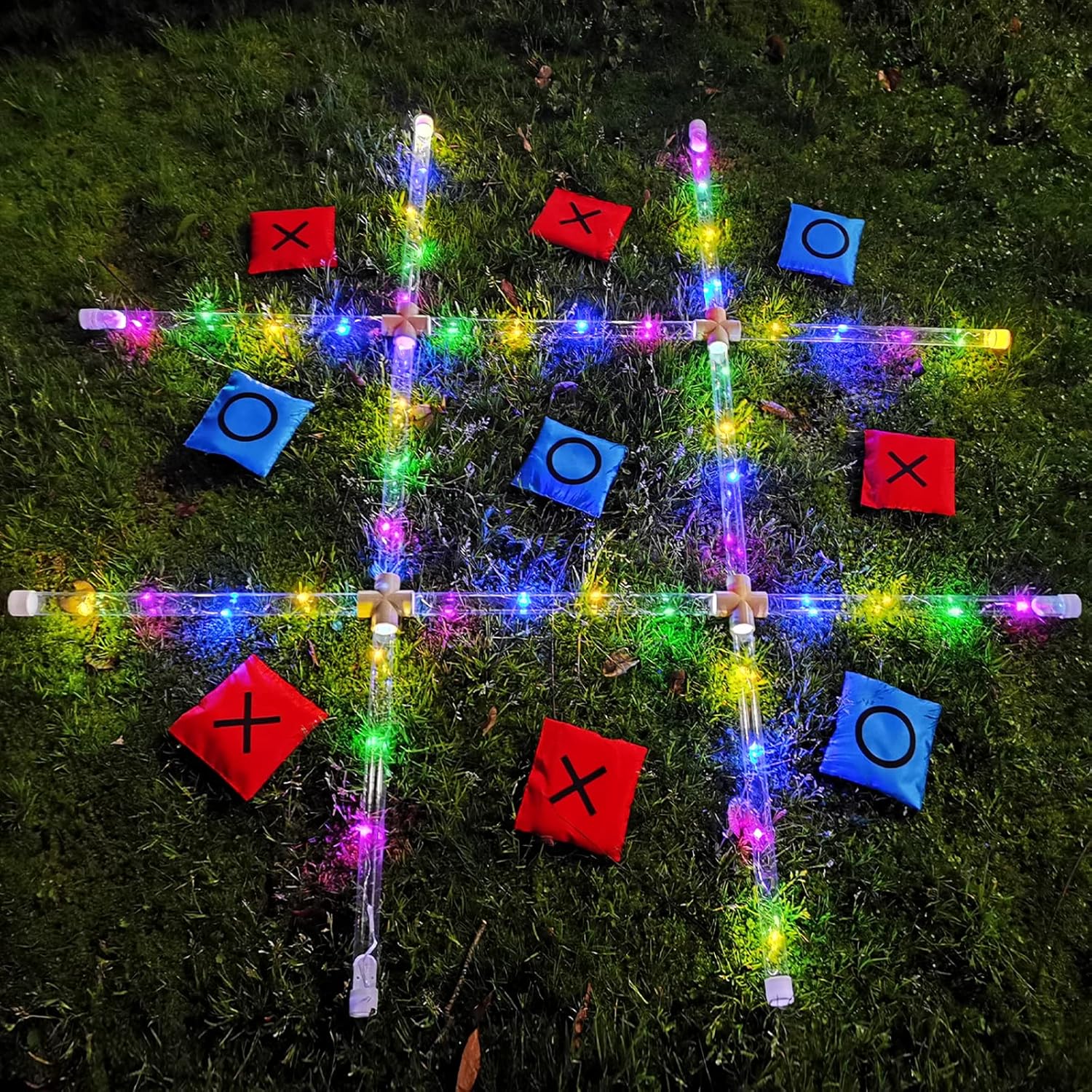 - ⌛【 Have Fun Day and Night with Toss Game 】: Newly Tic Tac Toe Games with LED Light. This toss game will light up at night, so you can play not only during the day, but also at night. You can also match other luminous games to play with your family and friends and feel the exciting charm of night games.