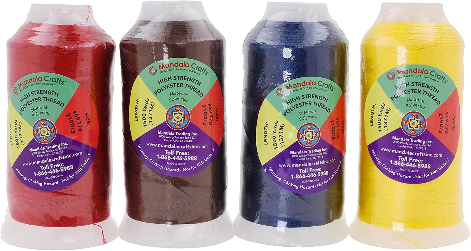 Mandala Crafts Brown Navy Blue Yellow Red Heavy Duty Thread - 6000 Yds Tex 70 Thread - Bonded Polyester Thread Outdoor Marine Upholstery Threads