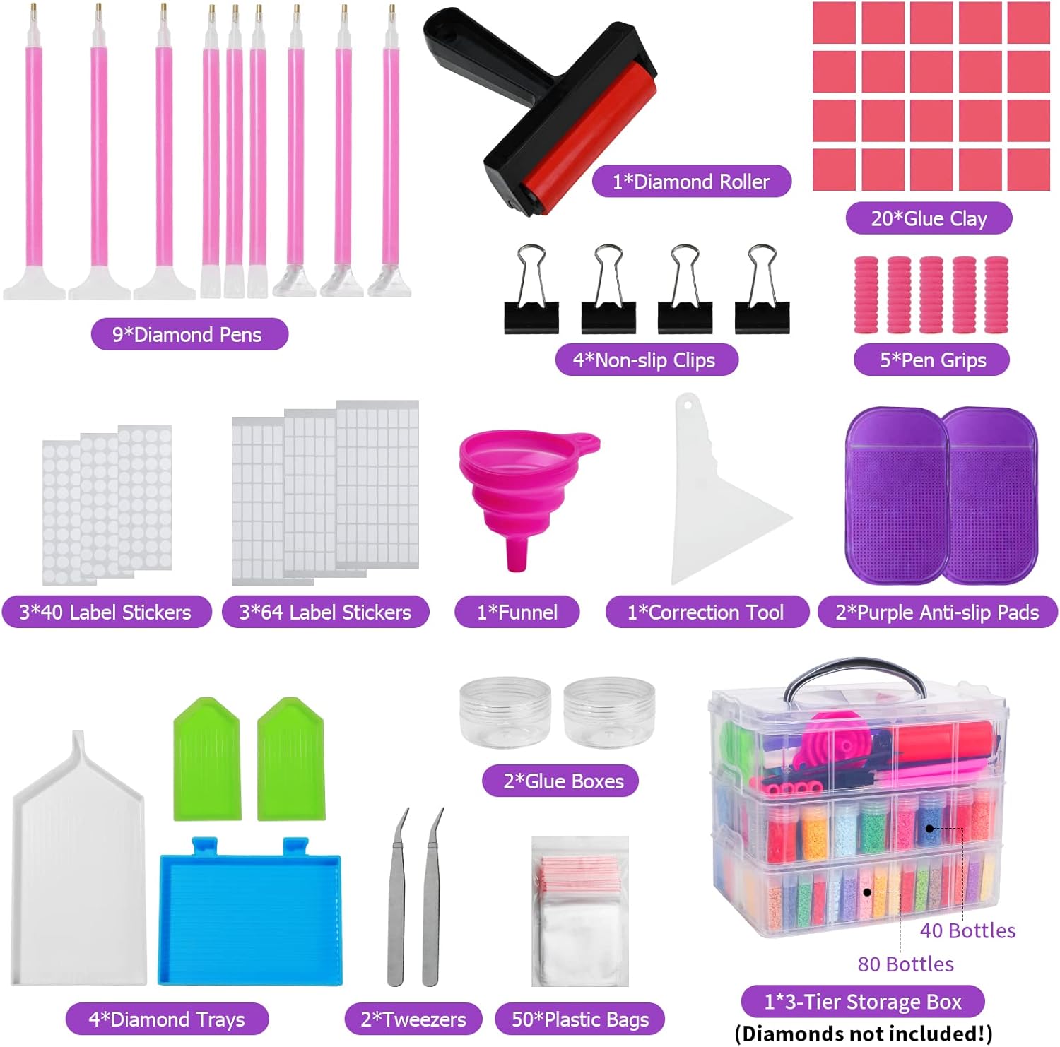 - Multifunction Diamond Storage Box: Our diamond painting accessories kit can store various colors of diamonds and necessary diamond painting tools. With the help of these diamond painting tools, you can store the accessories very neatly and easily accessible. In addition to diamond painting accessories, this box can also be used to store jewelry beading supplies, embroidery tools. Let's create more beautiful handicrafts!