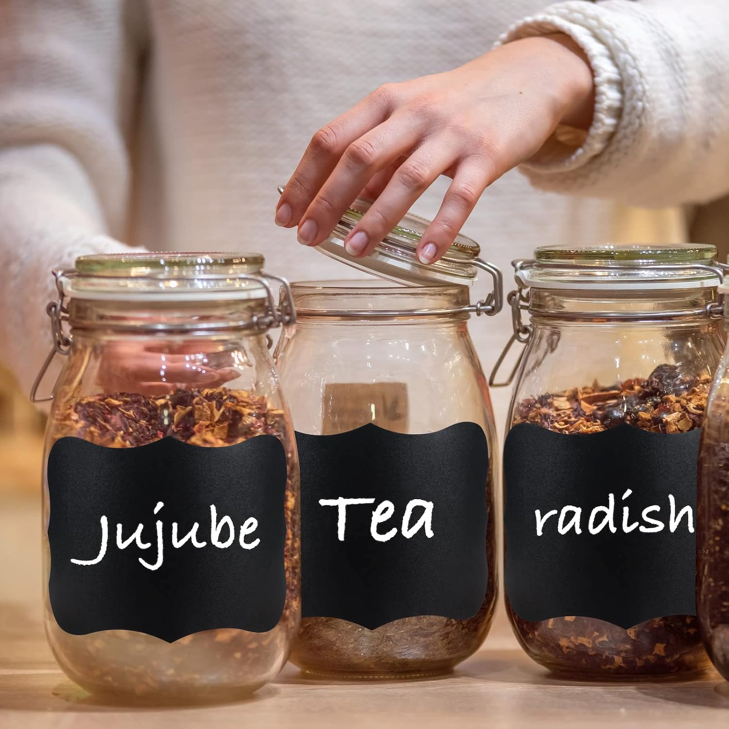 - π MULTI-PURPOSE DIY CHALKBOARD LABEL: Totally 48pcs waterproof reusable chalkboard labels with reasonable size to let you can cut these blackboard labels into different shapes, custom personalized sticker labels use as glass bottle labels. Chalkboard labels sticker great for extra large jars, boxes & jugs and other containers or refrigerator, mason jars, bottles, food containers, storage bins, office folders and other DIY projects.