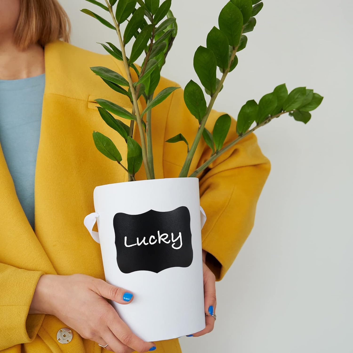 - π MULTI-PURPOSE DIY CHALKBOARD LABEL: Totally 48pcs waterproof reusable chalkboard labels with reasonable size to let you can cut these blackboard labels into different shapes, custom personalized sticker labels use as glass bottle labels. Chalkboard labels sticker great for extra large jars, boxes & jugs and other containers or refrigerator, mason jars, bottles, food containers, storage bins, office folders and other DIY projects.