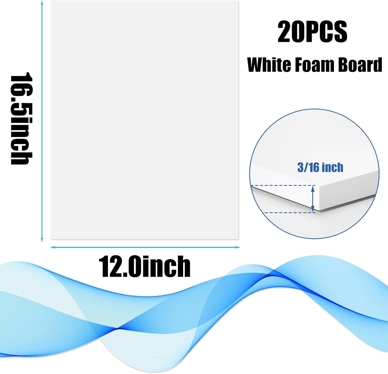 20 Pack White Foam Board 12" x 16.5", 3/16" Thickness Foam Core Baking Board for Projects, A3 Polystyrene Mat Board Poster Foam Board Sheets for Art Crafts, Presentation, Wedding, School Projects