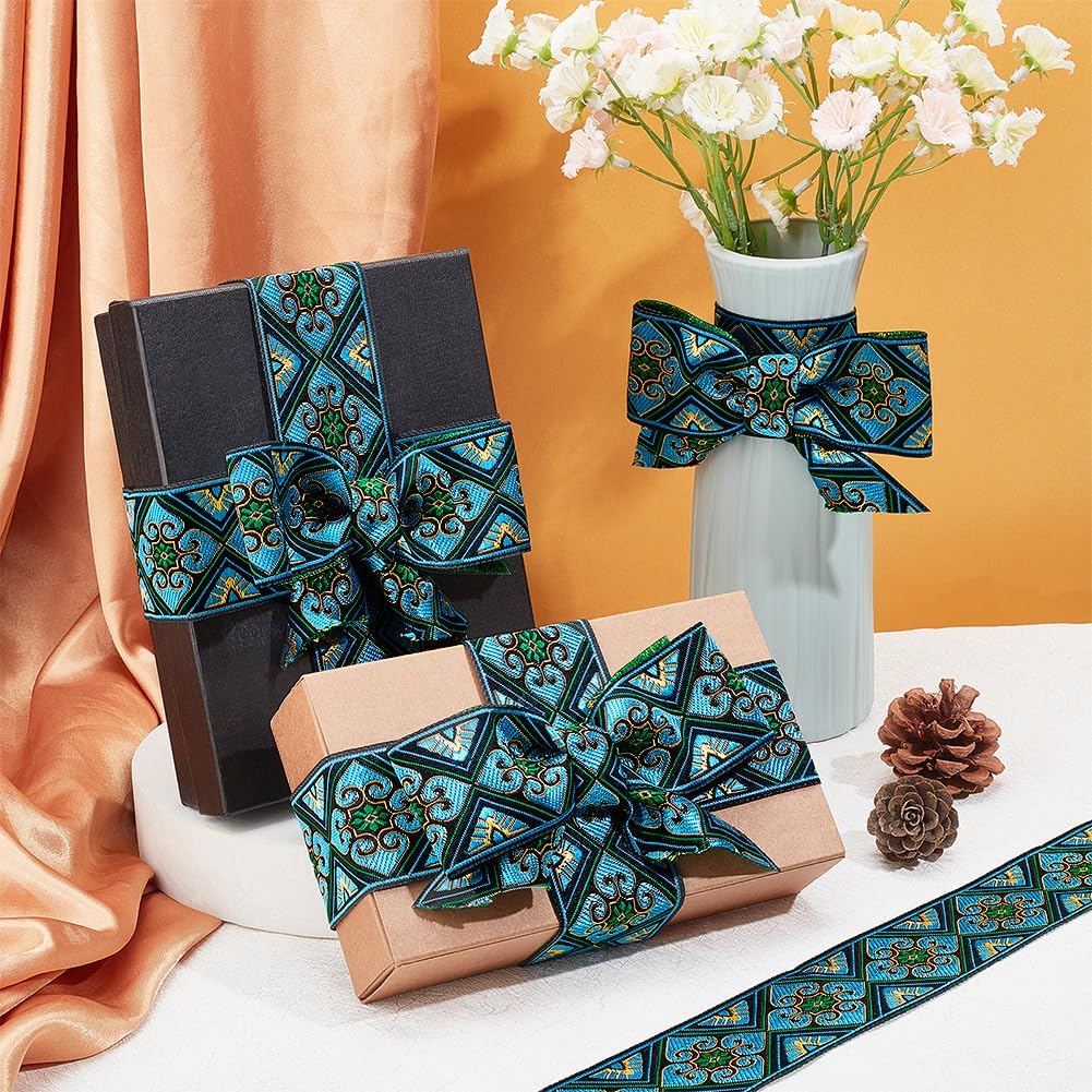 PH PandaHall 7 Yards Jacquard Ribbon Trim 2 Inch Boho Embroidered Woven Lace Ribbon Fabric Vintage Flowers Straps Fabric Bias Tape for Bohemian Persian Clothes Bag Holiday Christmas Decor Gift Wrap