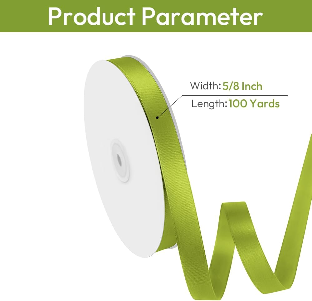 - 【Ample Length for Your Craft】5/8 inch olive green satin ribbon is 100 Yds long, providing ample material for all your crafting needs such as wedding invitations, sewing, hair bows, flower bouquet supplies, lei making, homecoming mum accessories, and more.