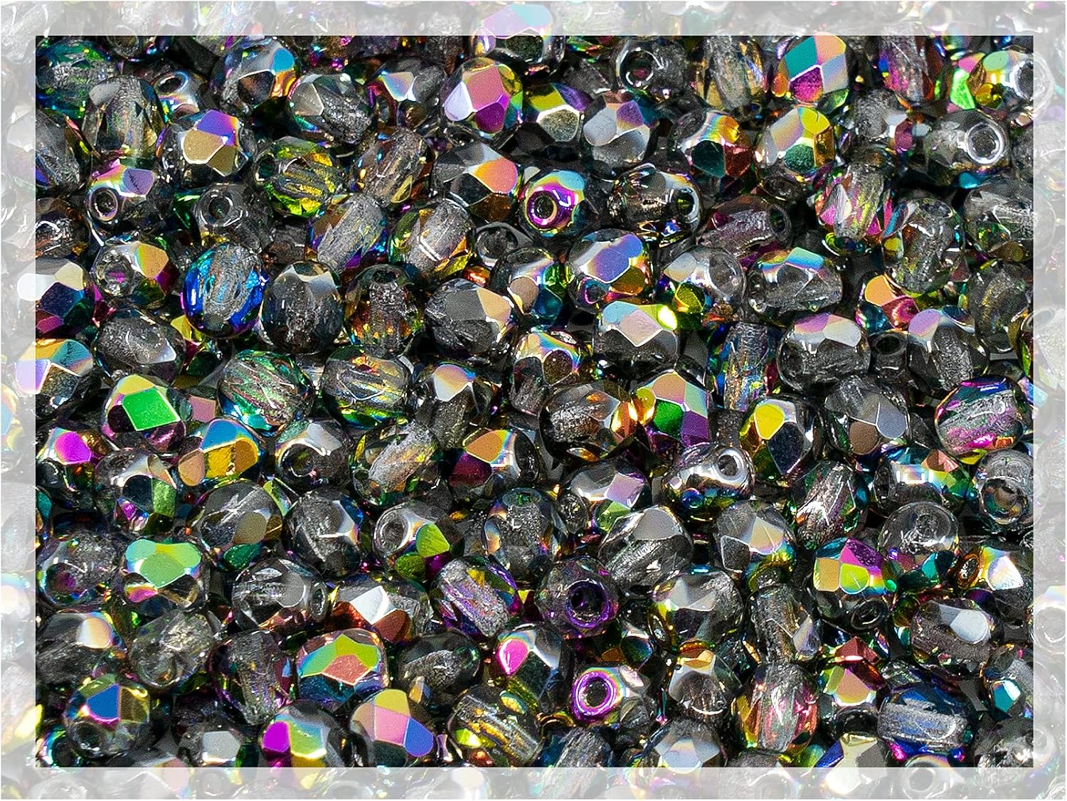 1.8 oz (50g, Approx. 600pcs) of Faceted Fire Polished Pressed Czech Glass Beads 4mm (0.16in), Crystal Vitrail 00030-28101 BCV