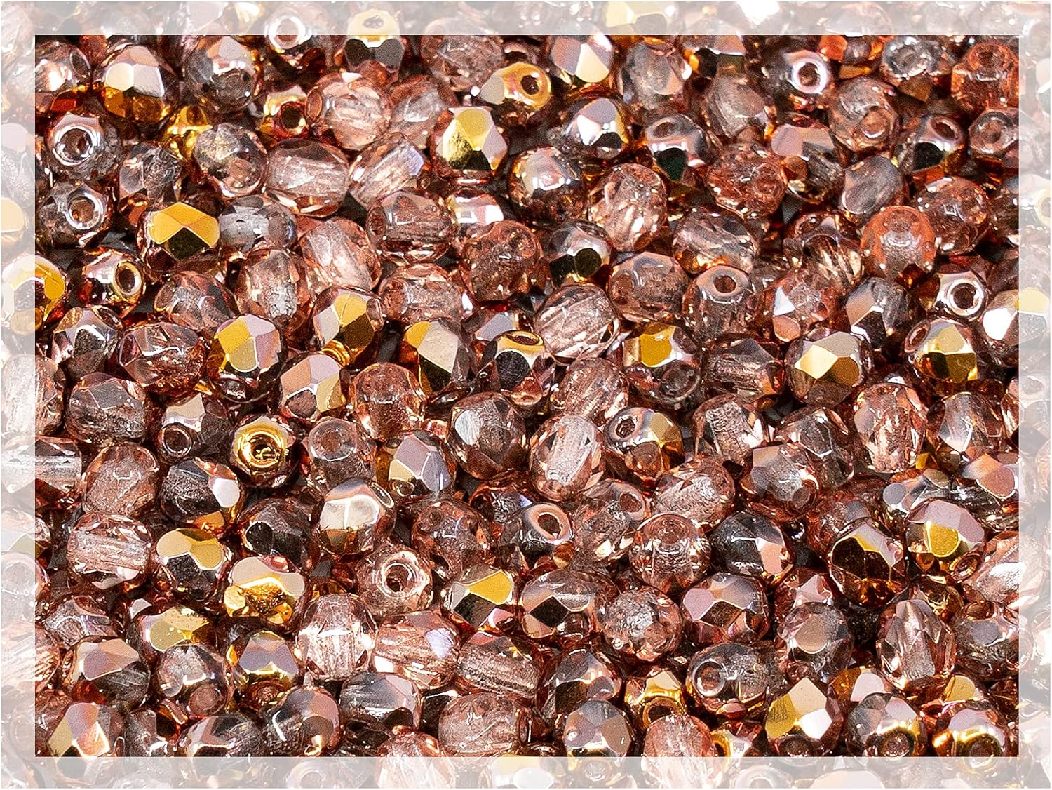1.8 oz (50g, Approx. 600pcs) of Faceted Fire Polished Pressed Czech Glass Beads 4mm (0.16in), Crystal Copper Capri Apollo 00030-27101 BCV
