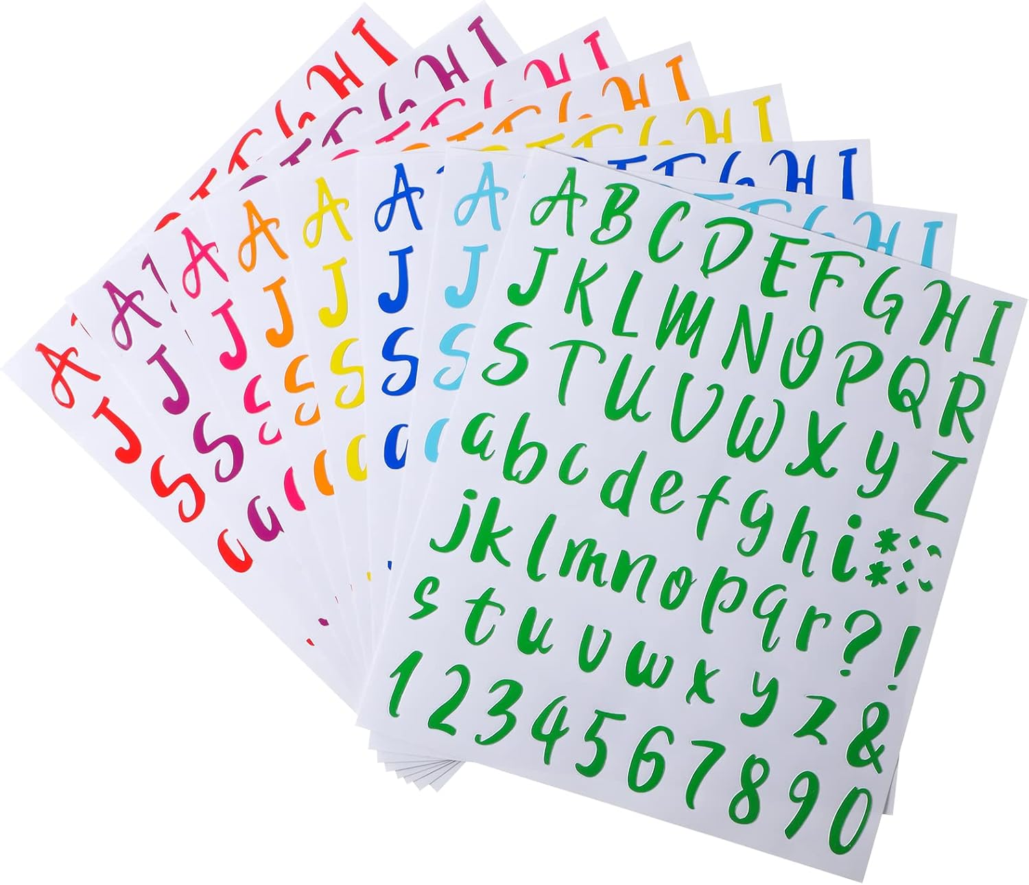 - Package Included: you will receive 8 sheets self adhesive vinyl letters numbers, totally 576 pieces, including 208 pieces capital letter, 208 pieces lowercase letter and 160 pieces numeric and punctuation, abundant quantity to meet your daily use requirements