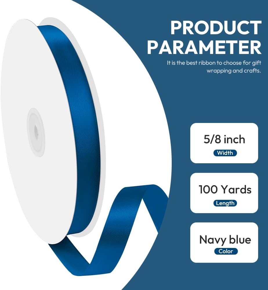 5/8" x 100 Yards Satin Ribbon - Navy Blue Silk Ribbon with Spool - Ideal for Gift Wrapping, Floral Bouquets, Crafts, Wedding Party Decorations, Christmas and Sewing Projects