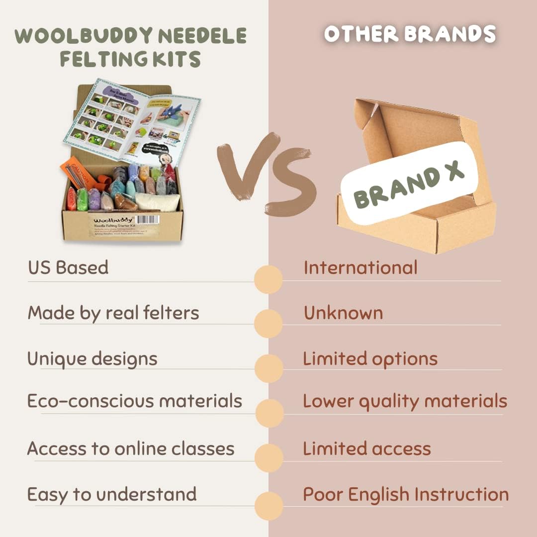 - π¦ WOOLEN MAT INCLUDED: Miniature of our woolbuddy needle felting mat (10cmx10cmx2cm). Woolen mats are better than felting foam. No stucked wool fiber after using our mat and no broken felting needles. Zero waste. Help save our environment.