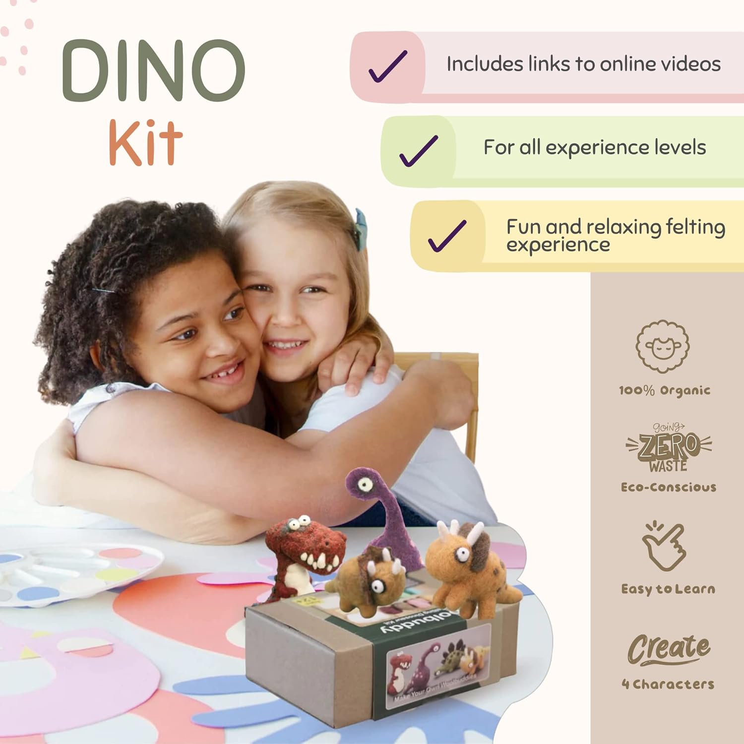 Woolbuddy Needle Felting Kit - Felted Dinosaurs for Beginners, Adults & Kids, Includes Wool, Pad, 4 Needles, and Instructions
