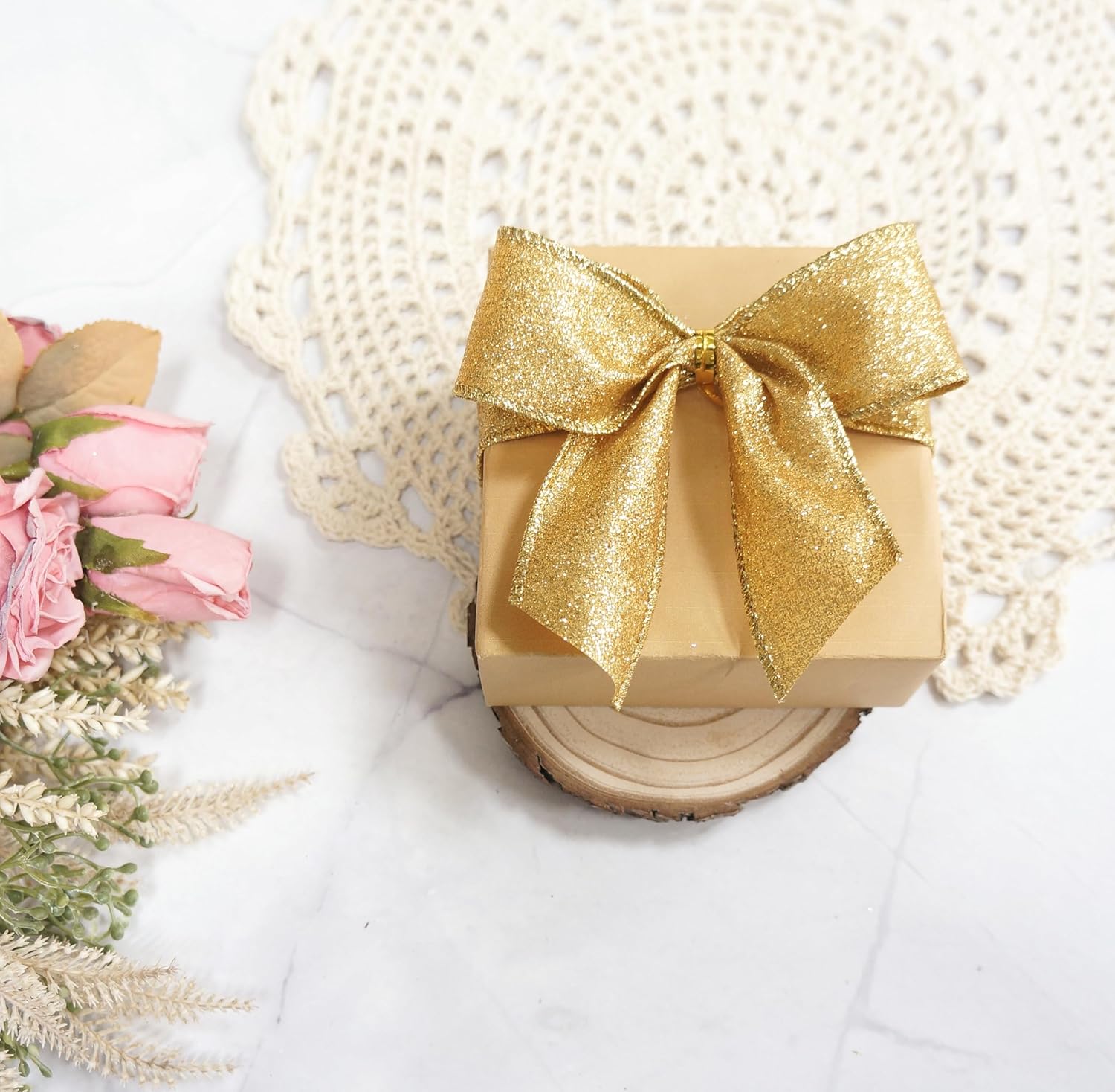 - OCCASION - Our Glitter Wired Ribbon 1.5" yellow gold color are very easy to match and suitable for birthdays, party decorations, Mother's Day, Valentine's Day, Easter, Independence Day, Halloween, Christmas, New Year's gifts, Wedding decorations, Baby showers etc.