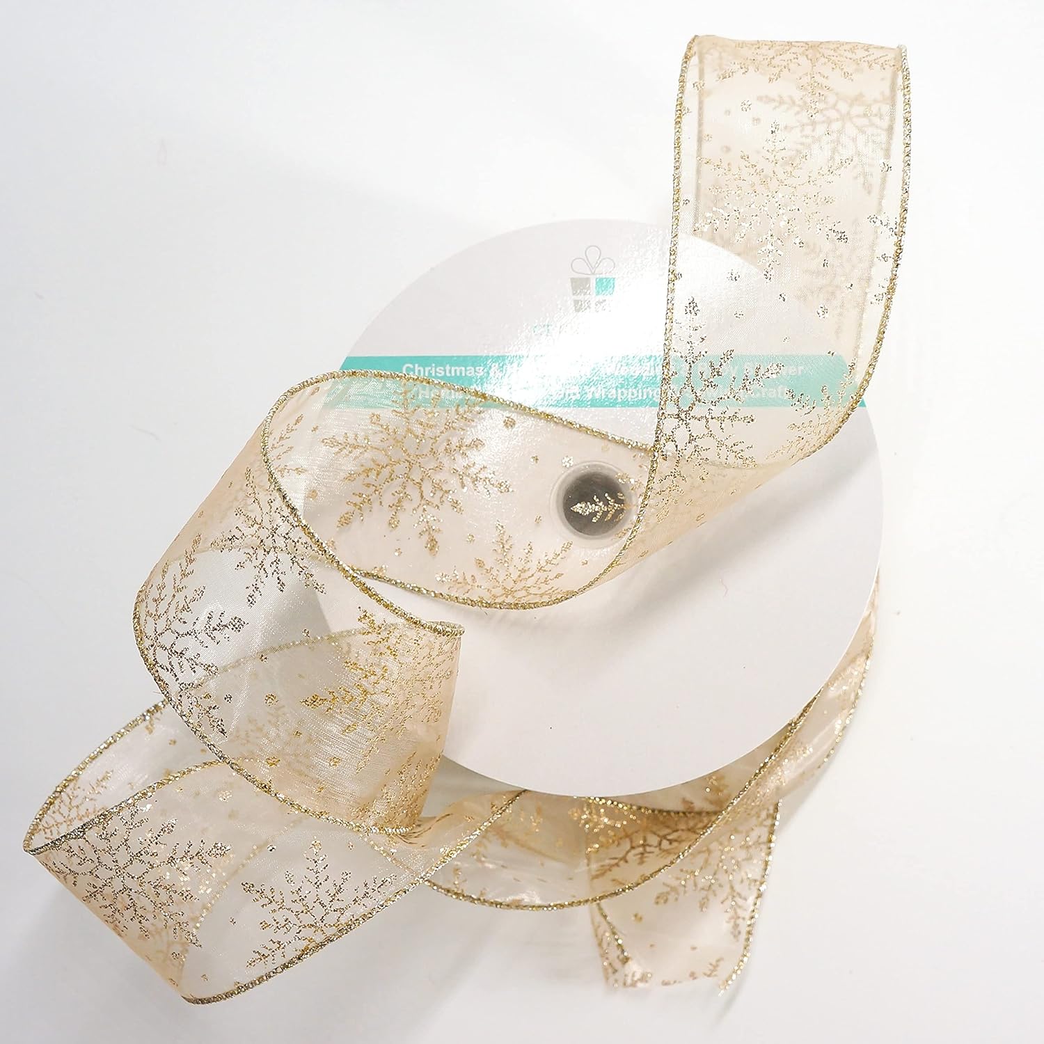 - A MUST-HAVE FOR DECORATION - Don't miss it if you're choosing a Organza with Champagne Gold Glitter Snowflakes Wired Ribbon 2.5" for your decoration! Our ribbon works perfectly for decorating and adding finishing touch to your craft projects. Simple and elegant.