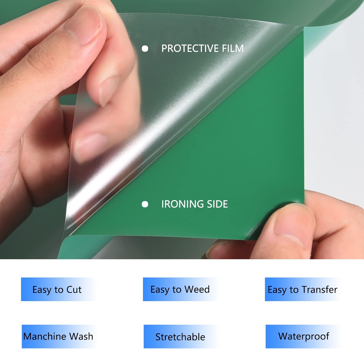 - Glossy heat transfer vinyl HTV: Our Green htv iron on vinyl is made out of the highest quality polyurethane that is incredibly strong, durable and vibrant fine Using the special technology, the htv is thin and extremely durable and soft. The whole weeding process just like a breeze at the help of sticky back.