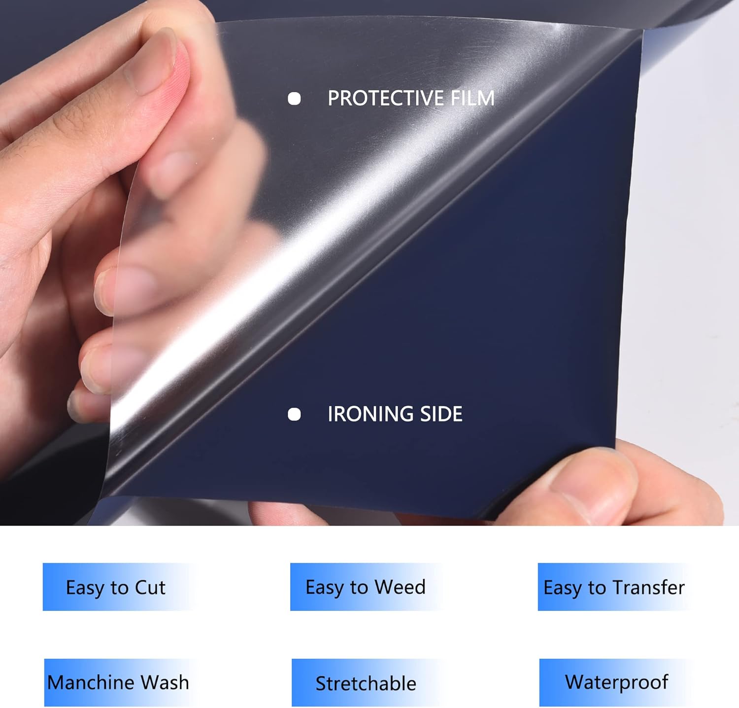 - Glossy heat transfer vinyl HTV: Our htv iron on vinyl is made out of the highest quality polyurethane that is incredibly strong, durable and vibrant fine Using the special technology, the htv is thin and extremely durable and soft. The whole weeding process just like a breeze at the help of sticky back.