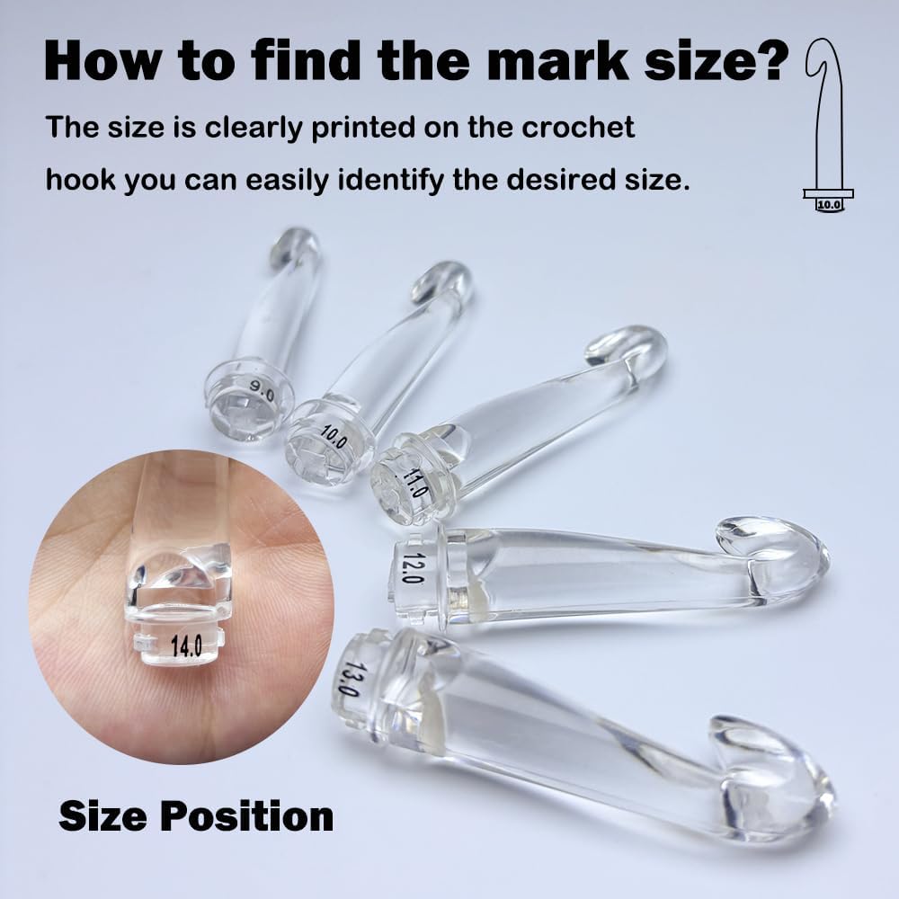 - 17 Size Ligted Crochet HookοΌThe stitch counting crochet hooks set include for 17 size(2.5mm~14.0mm), it will can meet your different project from lace to chunky yarn. The lighted crochet hooks providing bight light that allow you to see dark yarn clearly or in dim condition.