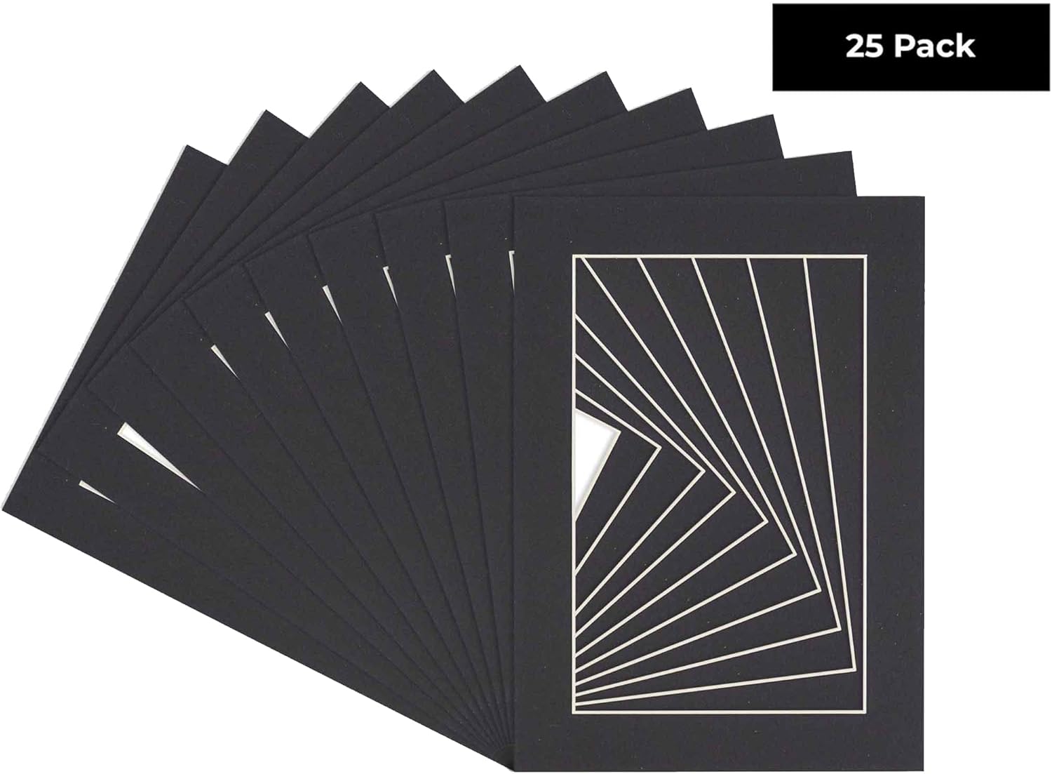 5x7 Mat for 8.5x11 Frame - Precut Mat Board Acid-Free Black 5x7 Photo Matte Made to Fit a 8.5x11 Picture Frame, Premium Matboard for Family Photos, Show Kits, Art, Picture Framing, Pack of 25 Mats