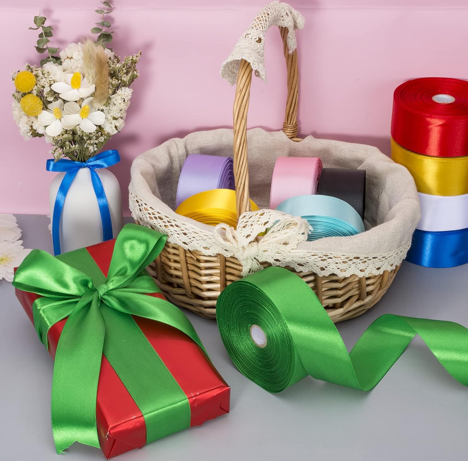- Bright Color ribbons, great color fastness; Bright and lively, this ribbon adds a lively atmosphere to gift wrapping or holiday decorations