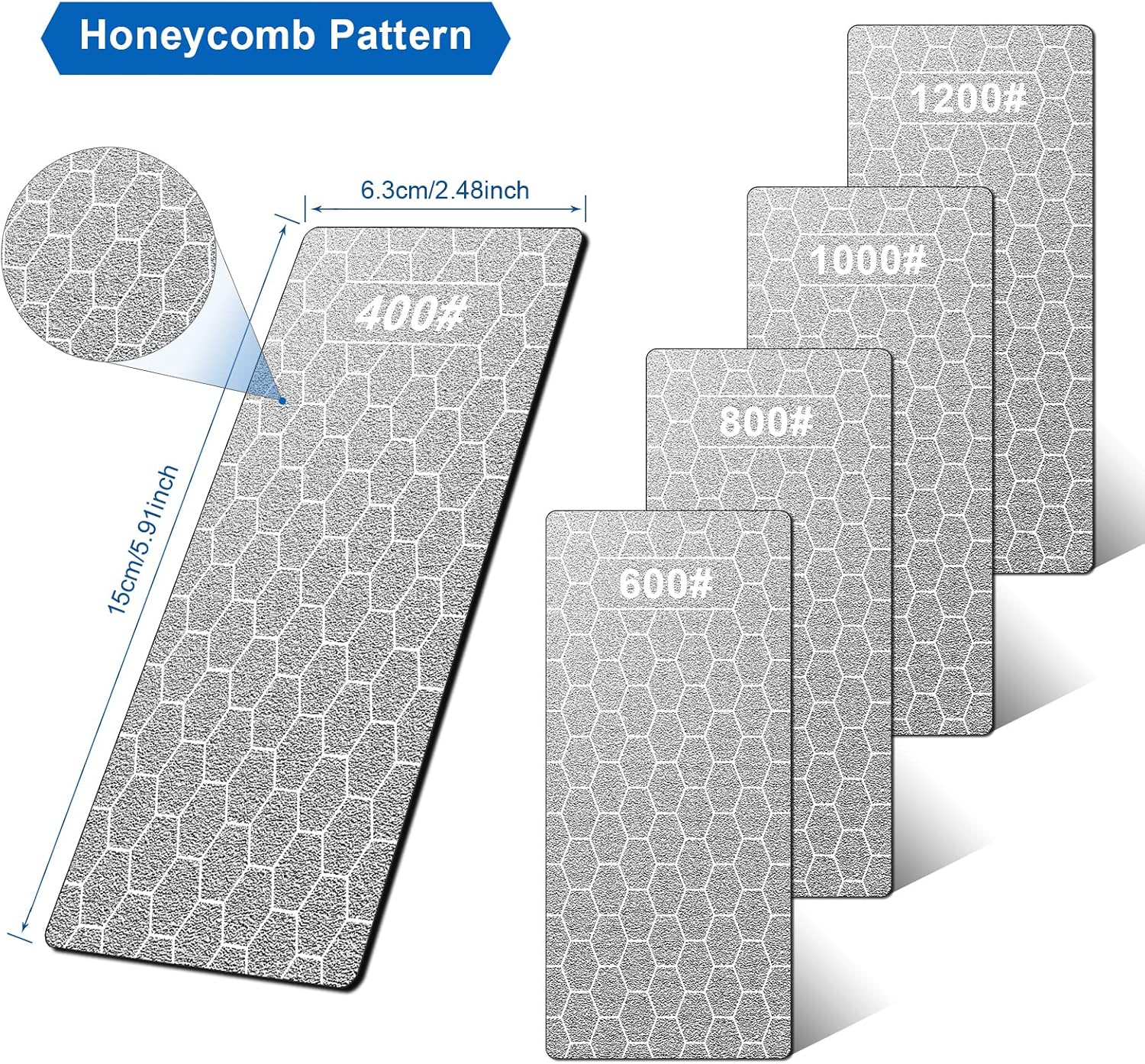 - Unique Honeycomb Design:The sharpening stone set with unique honeycomb design ensures that the dust generated during the grinding process will not affect the sharpening. The diamond sharpening stone has a non-slip base to ensure that it will not slip during use and easily tackle both coarse and fine sharpening jobs.