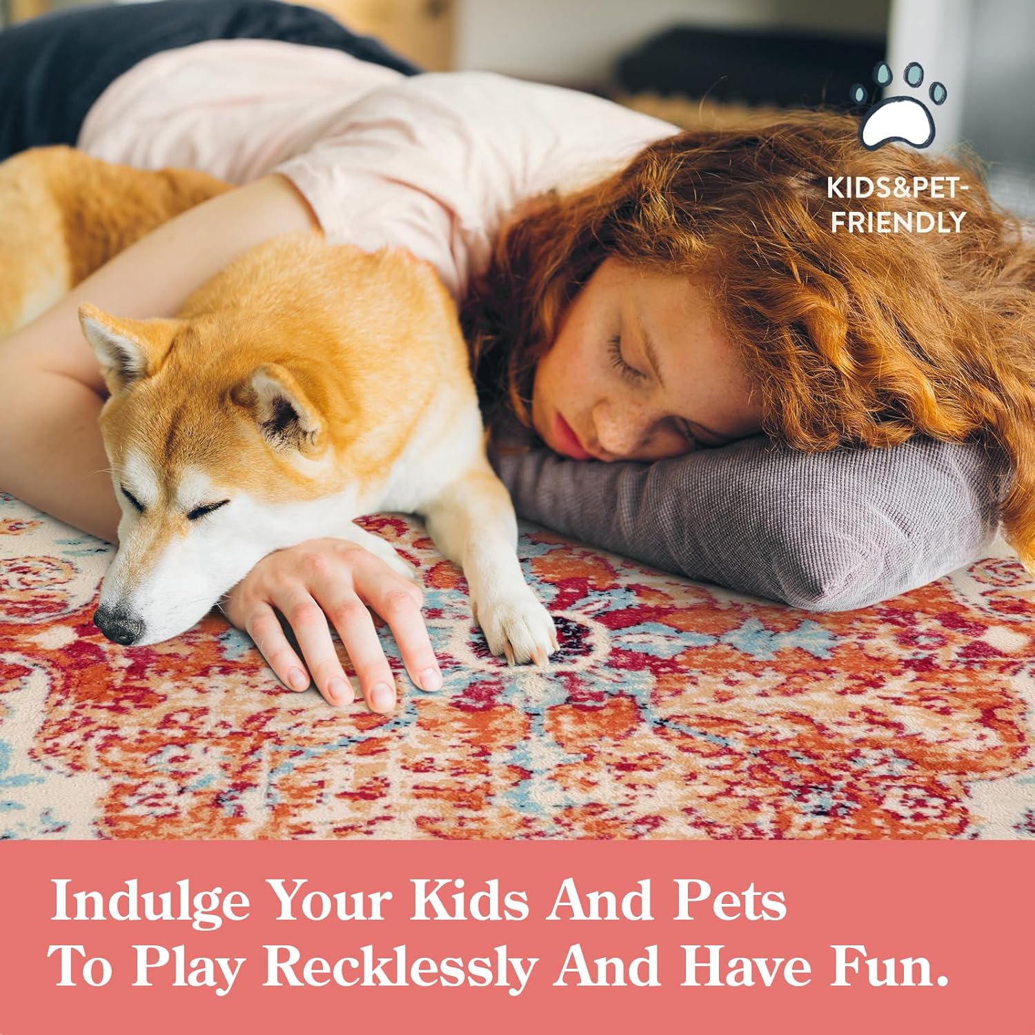 - [Exclusive Design Accent Rug] - The suitable way to brings a refreshing boost of color to your home, this bohemian floral medallion rug is a must-have for your home. It features a cream, orange, and navy blue design patterns with purposeful distressing to add vintage appeal to your space.
