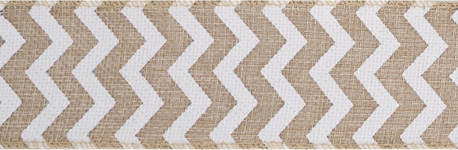 - Burlap ribbon with white chevron wired ribbon for wreaths or bows 2.5" x 10 yards by the roll. The ribbon has an tan threaded wired edge. Ribbon is shipped on the spool and would be beautiful for all of your craft needs, great product for wreath makers!