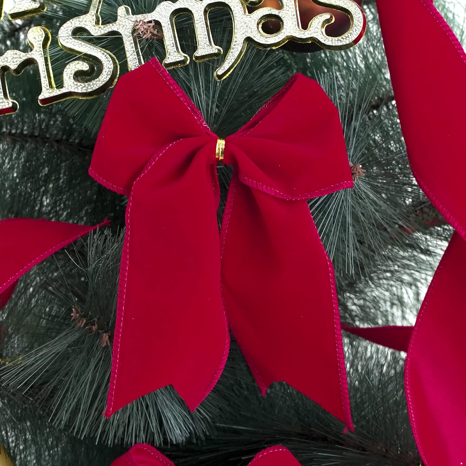 - The rich red color and premium-quality material offer endless possibilities for Christmas accents! The sewn wire-edged ribbon allows you to create beautiful bows that maintain their shape. Incorporate velvet red bows into your Christmas wreaths, column decorations, and wedding parties. Additionally, this thick ribbon is perfect for embellishing tree garland, complementing themed wreaths, wrapping holiday gifts, and adding a stunning touch to mailboxes, gift baskets, staircases.