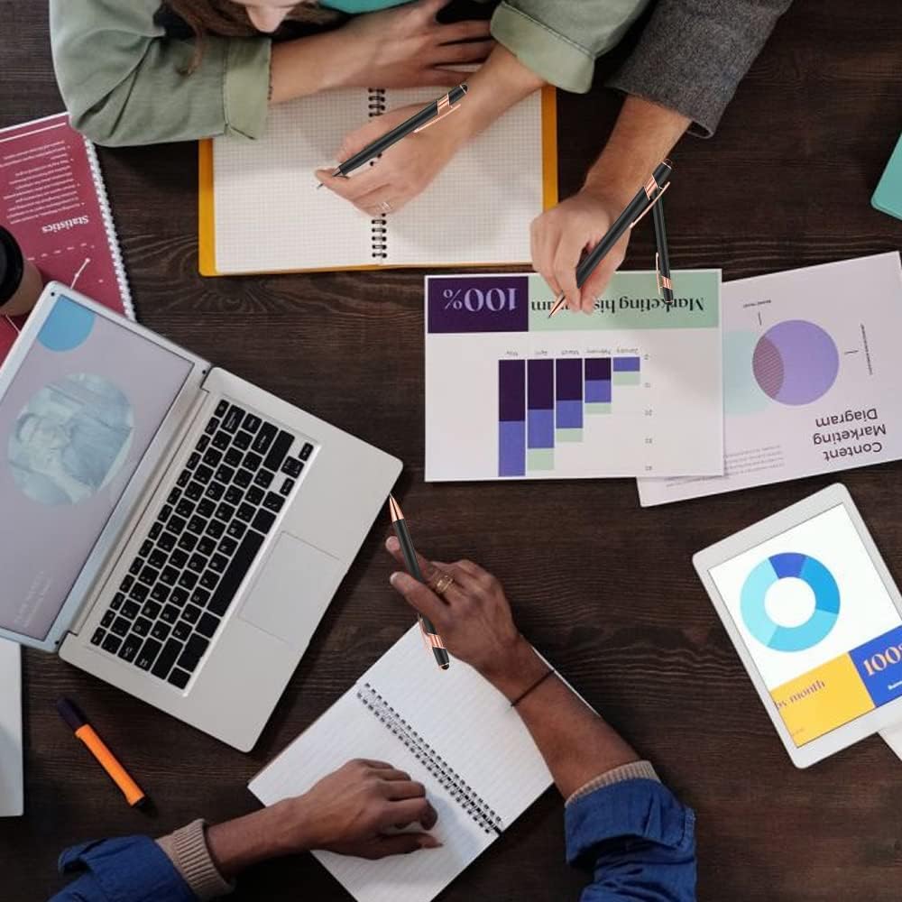 12 PCS 2 in 1 Stylus Ballpoint Pen with Stylus Tip, 1.0 mm Black Ink Metal Pen Stylus Pen for Touch Screens (Rose Gold & Black)