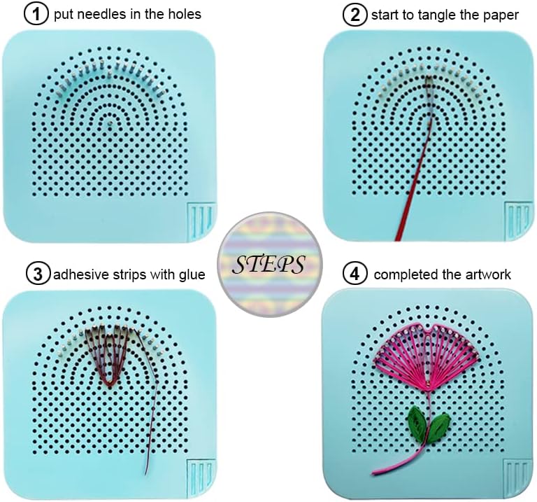 - 4. DIVERSE AND USEFUL: Our Quilling Knitting Board is easy to use and make leaves, heart-shaped and other various shapes. Assorted Sizes Quilling Pen make it easier to twirl paper and are comfortable to hold, help to apply adhesive glue evenly,for thick paper and several glued strips.