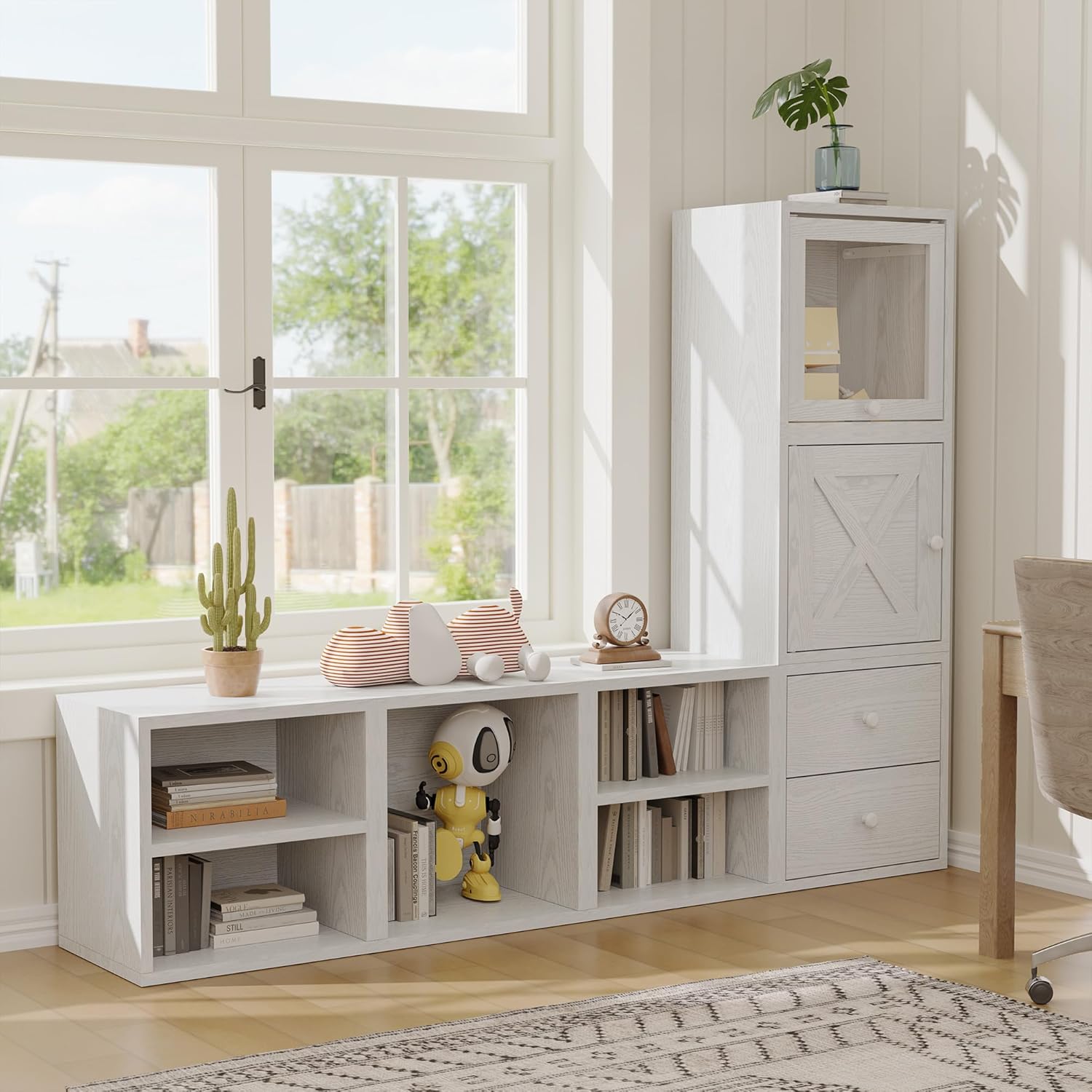 FUSUNBAO Magic DIY Cube Storage Organizer Stackable Cubes for Home Books Clothes Toy-Modular Cubby Storage System-Office Cubical-Bookcase Closet (Pure White-Washed, Door Cube)