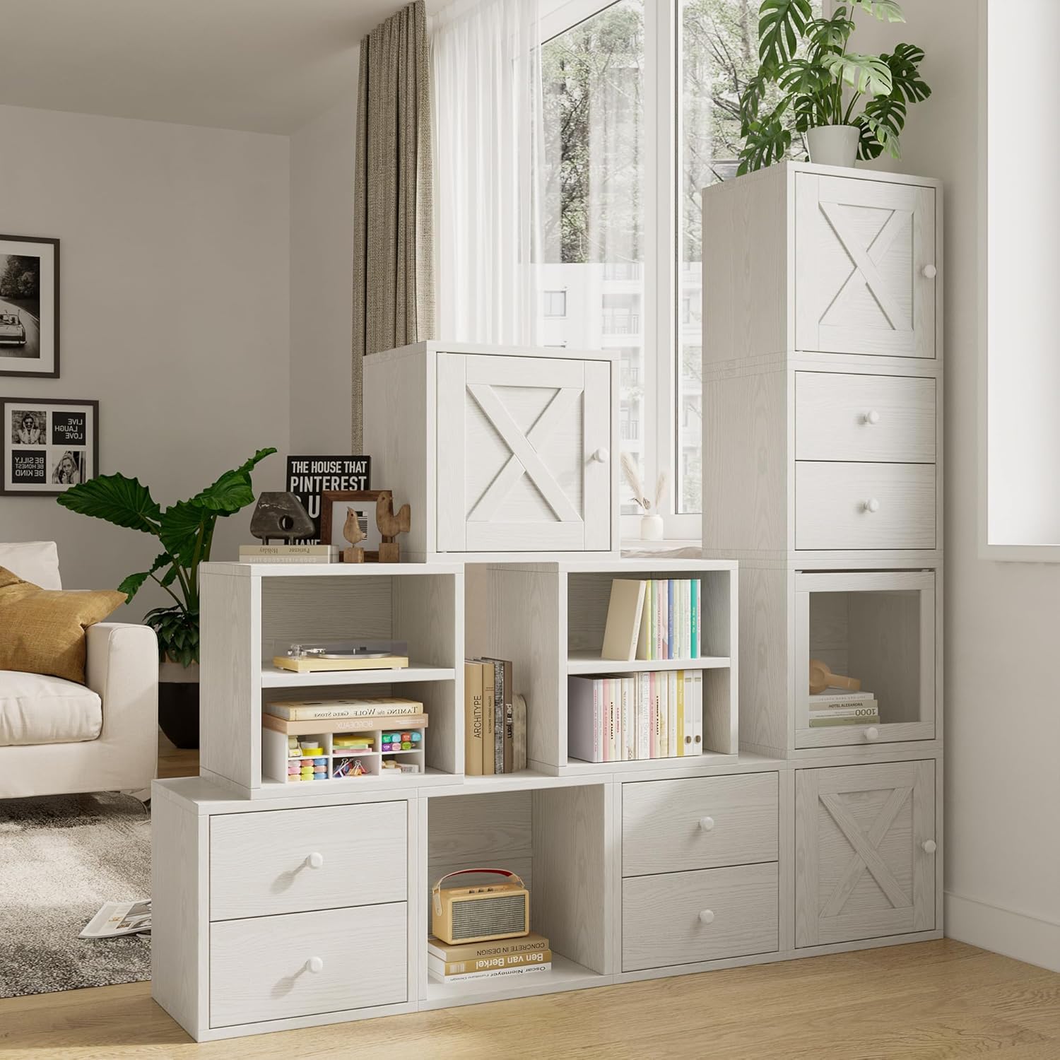 FUSUNBAO Magic DIY Cube Storage Organizer Stackable Cubes for Home Books Clothes Toy-Modular Cubby Storage System-Office Cubical-Bookcase Closet (Pure White-Washed, Drawer Cube)
