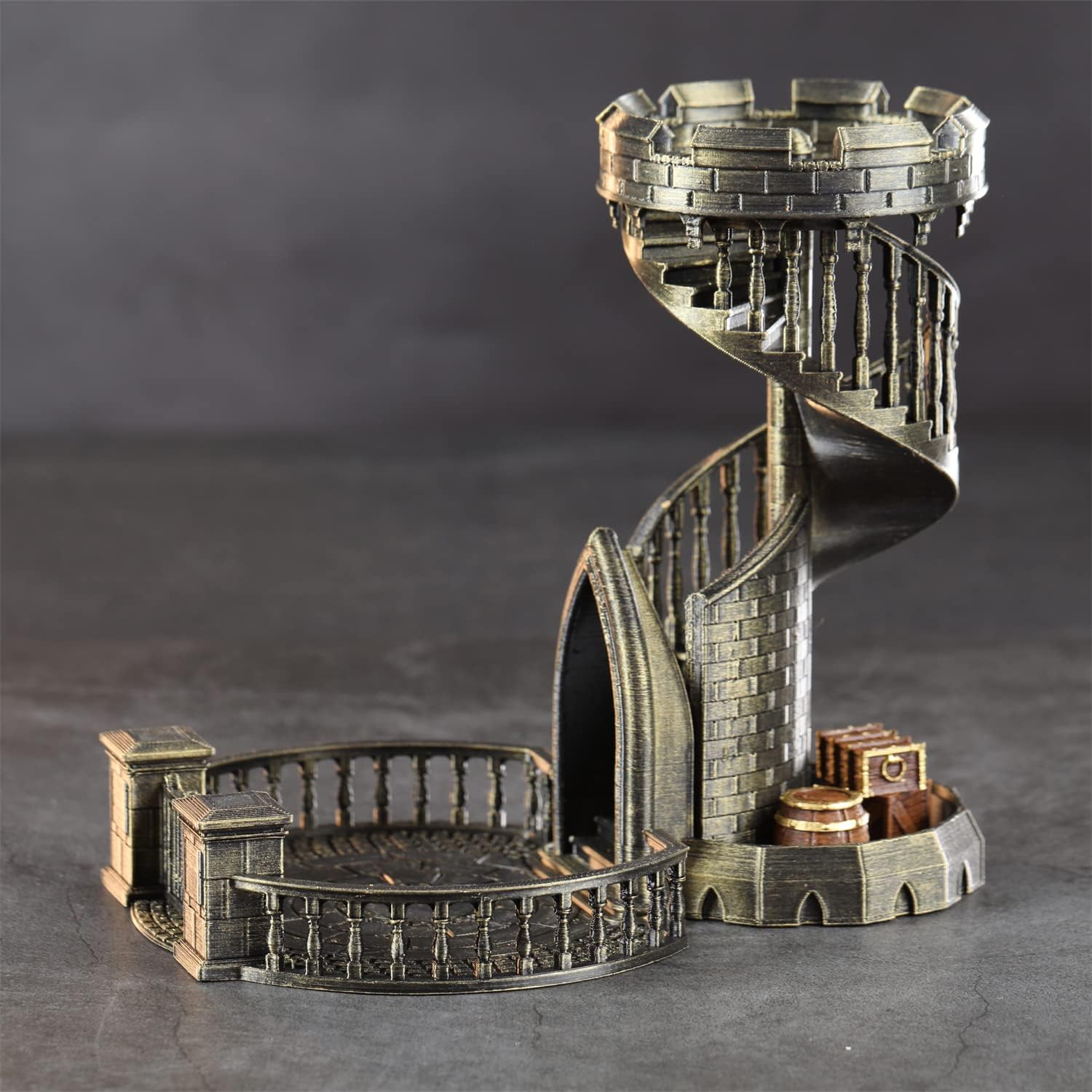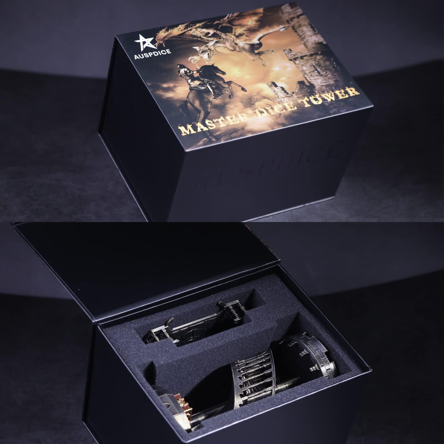 AUSPDICE DND Dice Tower Castle and Tray Retro Dice Rolling Tower for Dungeons and Dragons RPG Tabletop Games (Brushed Brass Color)