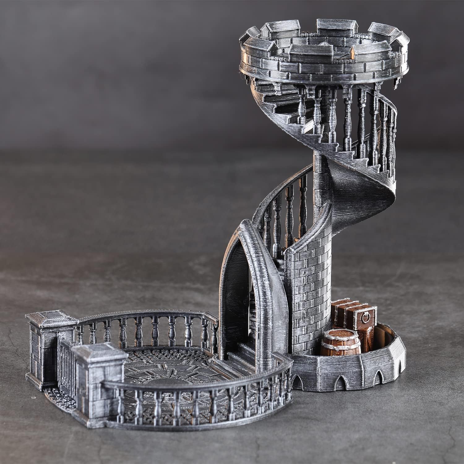 AUSPDICE DND Dice Tower - 36 Step Retro Color Tower for High Randomness in Table Games Like Dungeons and Dragons - Perfect Role Playing Game Gift (Ancient Silver Color)
