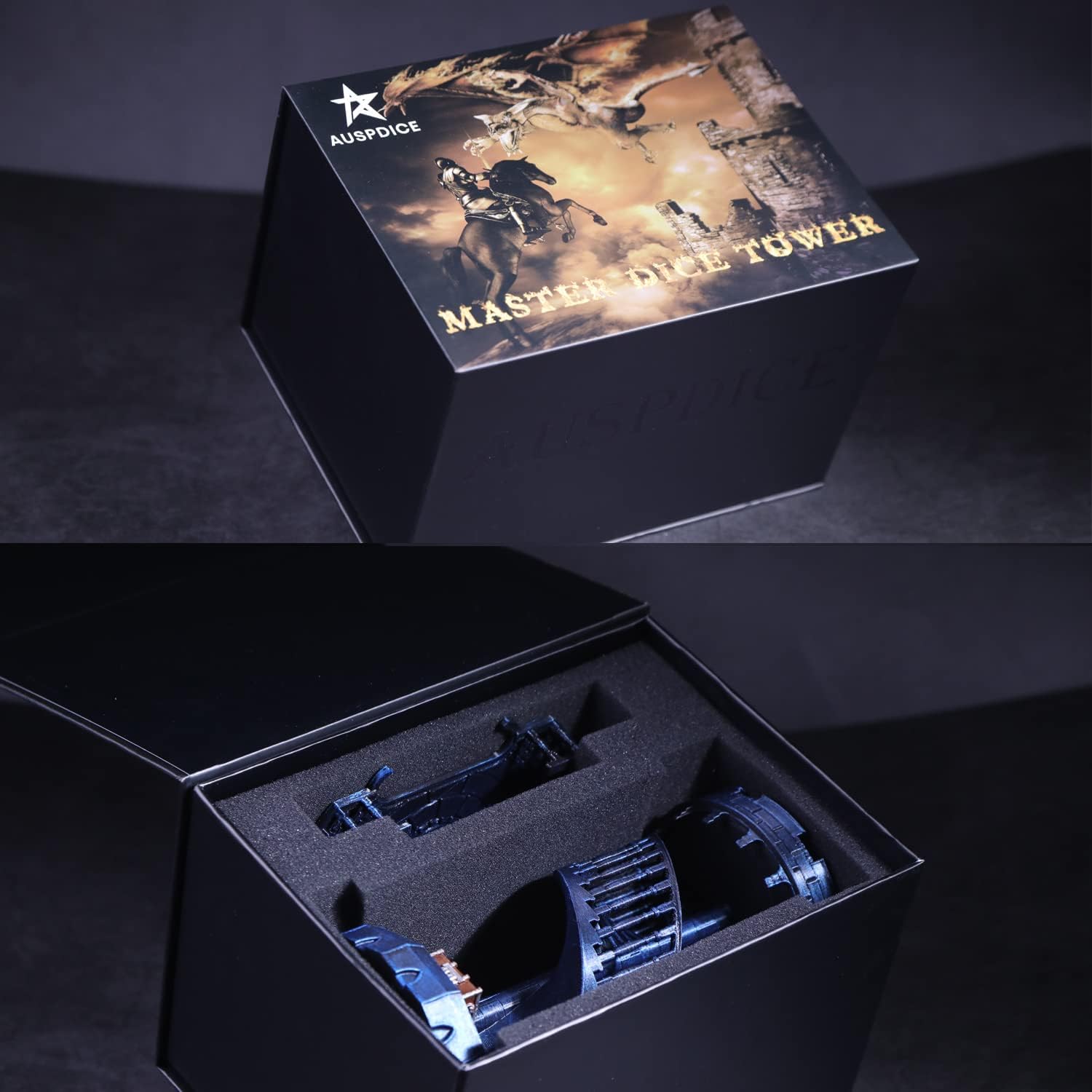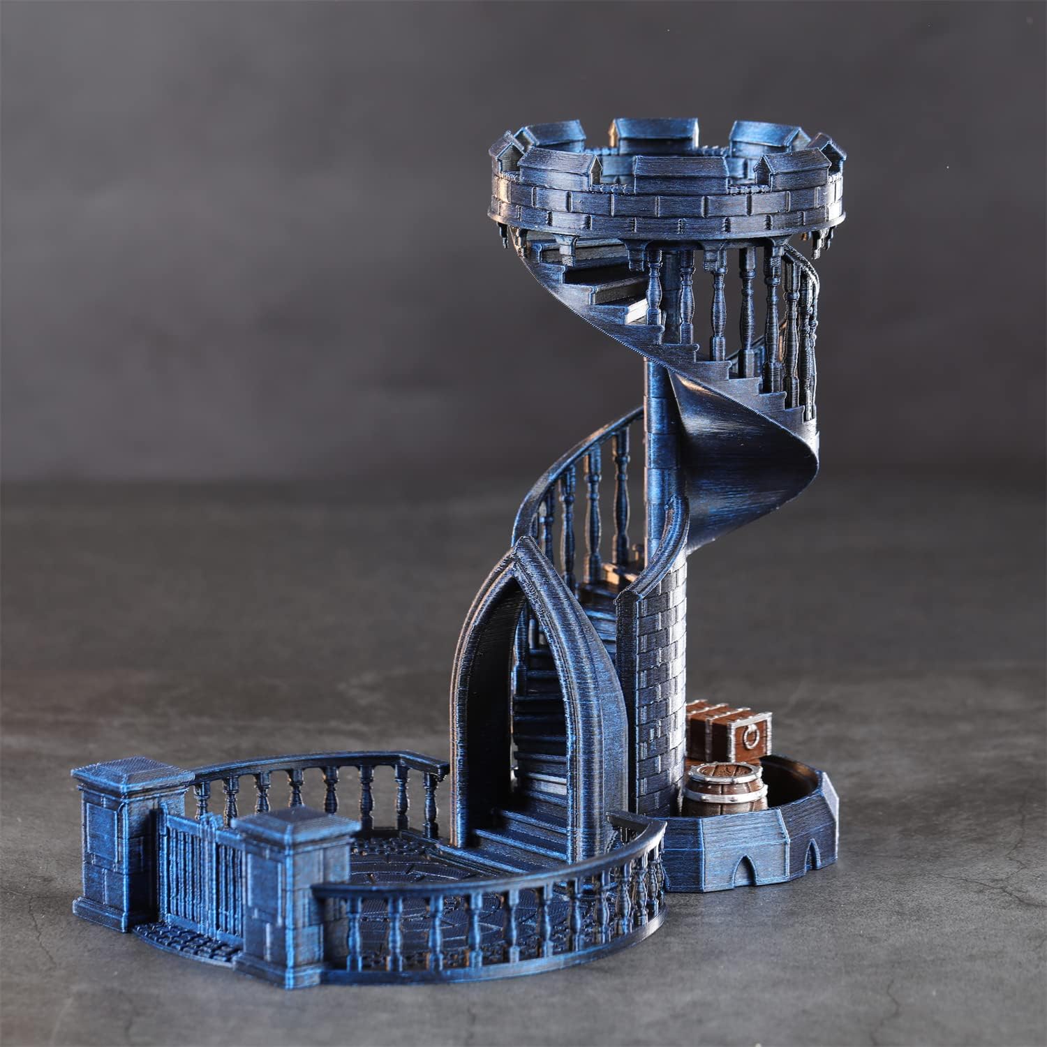 AUSPDICE Dice Rolling Tower and Tray with Spiral Stairs Perfect for Board Game, D&D Dungeons and Dragons, RPG and Pathfinder Role Playing Games (Antique Blue Color)