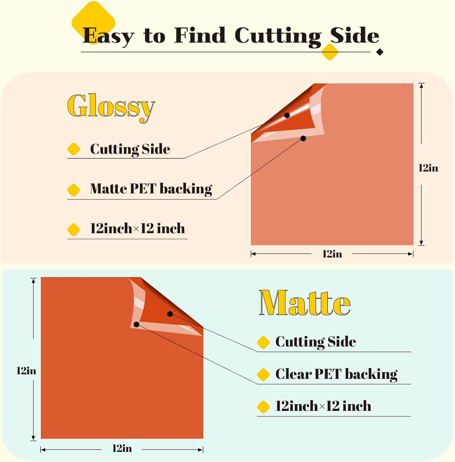 - PET Backing: Using our permanent vinyl with PET backing, you will not need to clean your mat and worry about project damage. Notice: The GLOSSY VINYL is made of translucent PET backing, the MATTE VINYL is made of clear PET backing