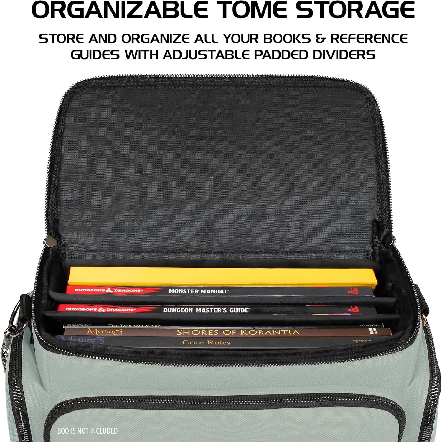 - BAG FOR YOUR RPG LIBRARY: Store 4-8 books and reference material for your next session in the main compartment with a divider for custom organization