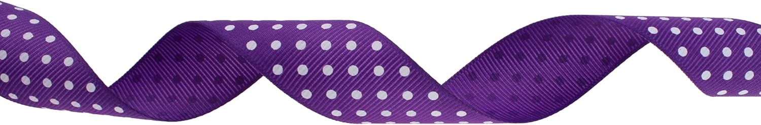 Polka Dot Grosgrain Ribbon 25 Yard Each Roll 100% Polyester (1", Purple)