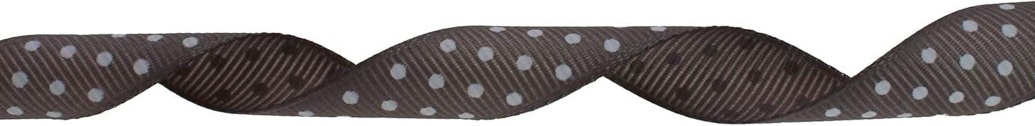 Polka Dot Grosgrain Ribbon 25 Yard Each Roll 100% Polyester (5/8", Gray)