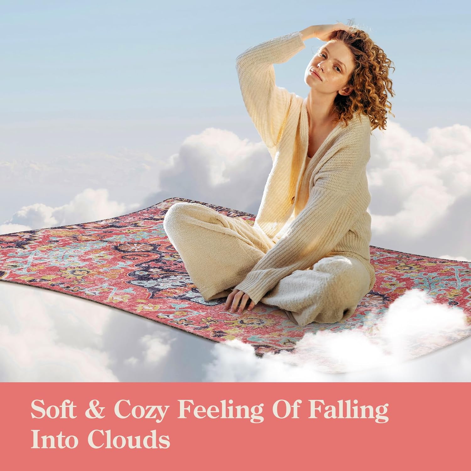 - [Exclusive Design Accent Rug] - This oriental area rug brings a vibrant color scheme and bohemian floral style print to your space. It mainly features a fuchsia, yellow stone, pretty light blue, pink ash brown design patterns, has a mystical quality that feels right out of a fairy tale, with purposeful distressing to add vintage appeal to your space.