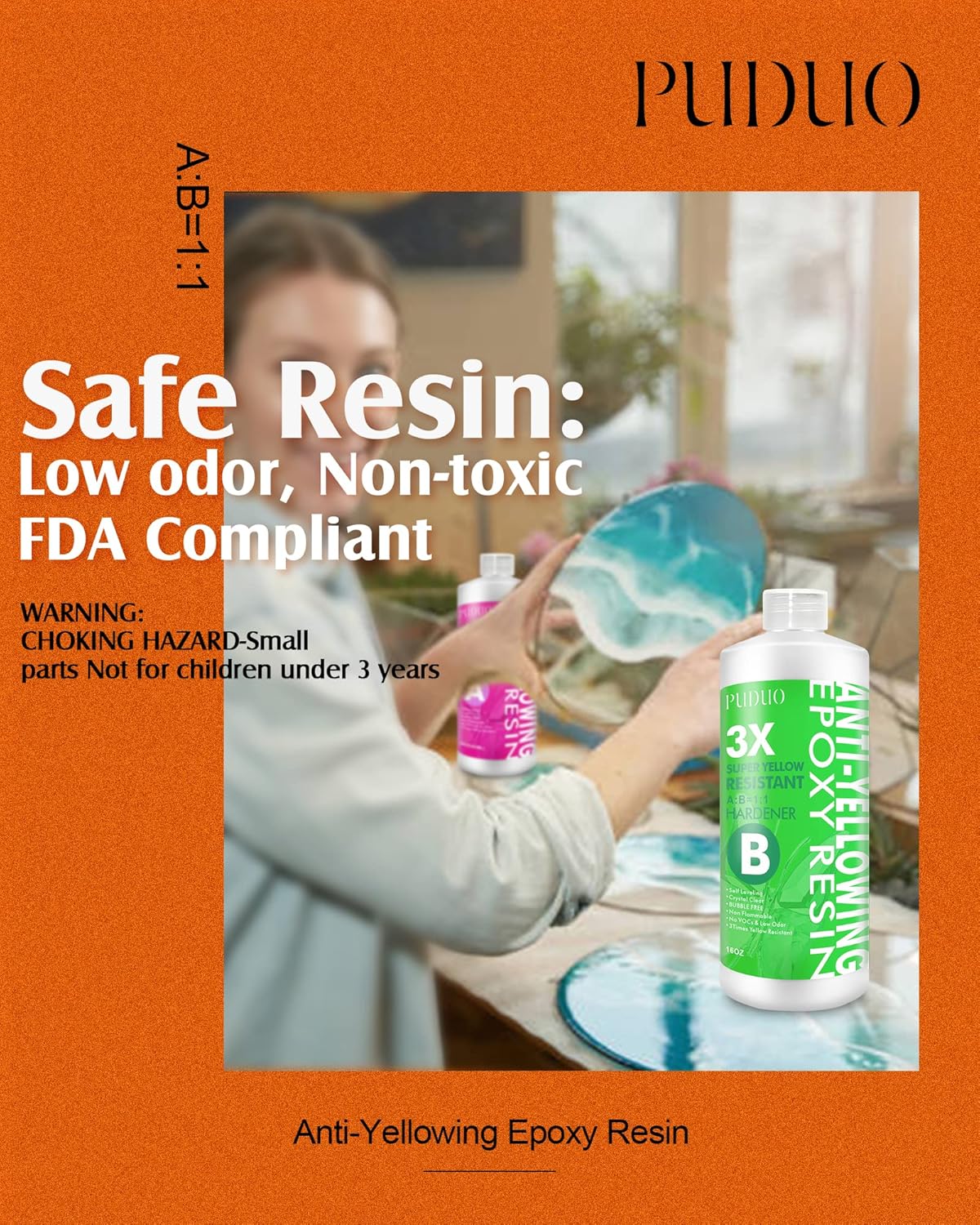 - Epoxy resin specifically formulated with a super anti-yellowing agent - PUDUO Epoxy Resin new product resists fading and yellowing, is high-gloss, and has super anti-yellowing and UV resistance. This products will keep your projects looking great for a long time.