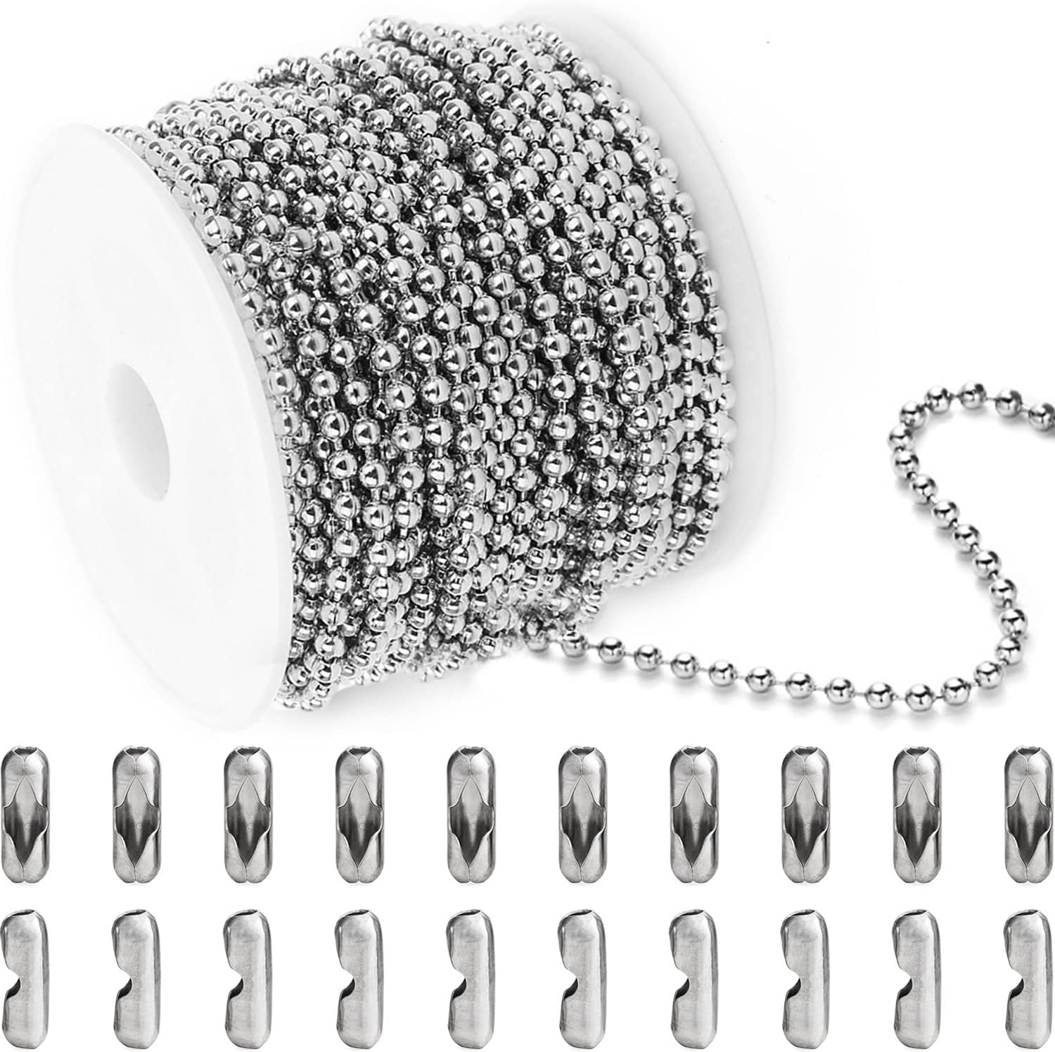 - 33 FEET ROLL SET: 33ft (10m) silver stainless steel ball chain in a spool with 20 pack silver stainless steel ball chain connectors.
