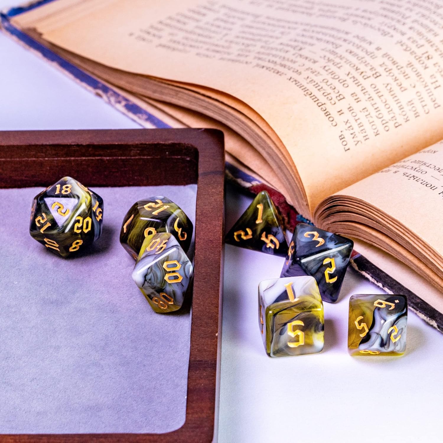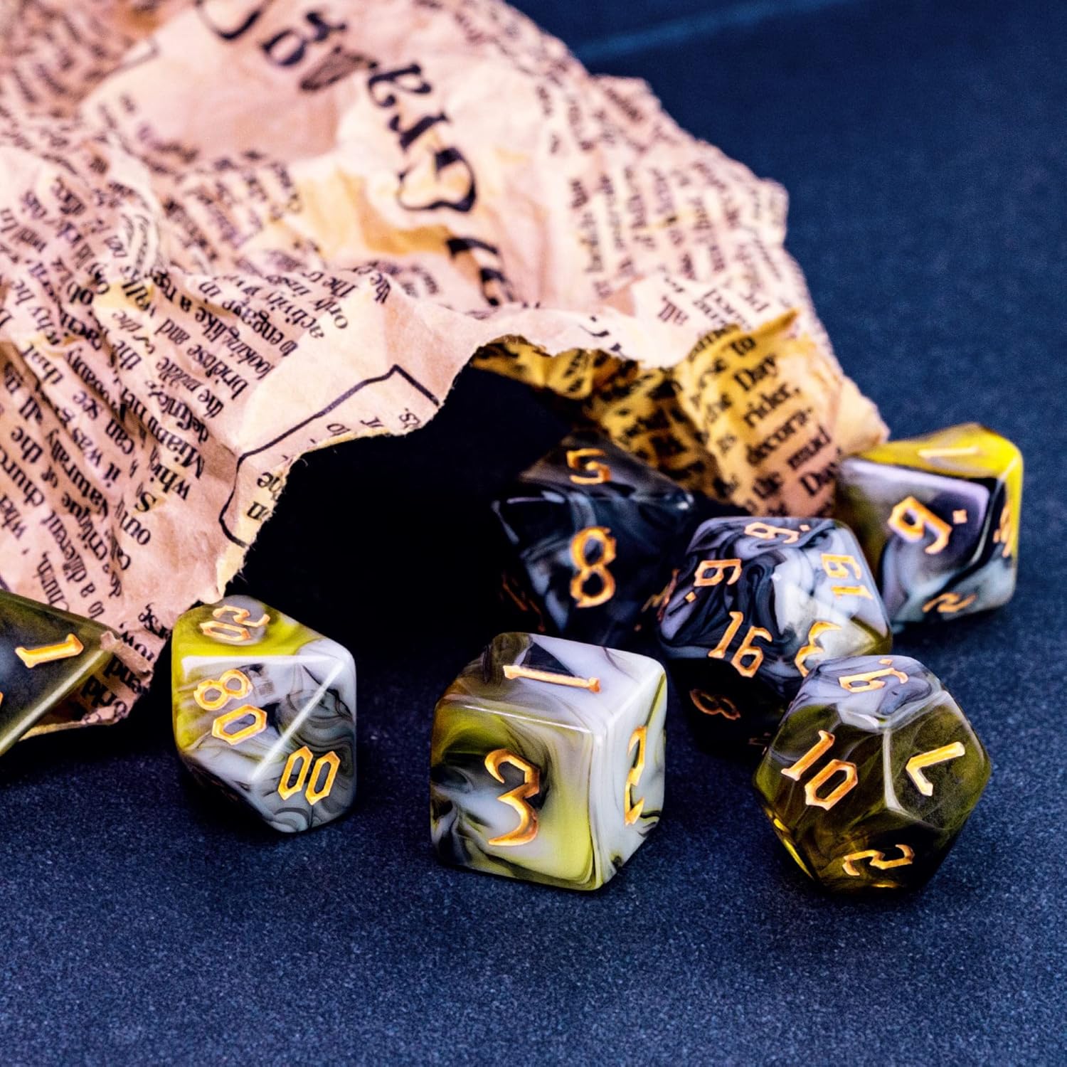 7-Die Polyhedral DND Dice Set for Tabletop Game, D&D Dice Set for Role Playing Games (Black&Yellow&White)