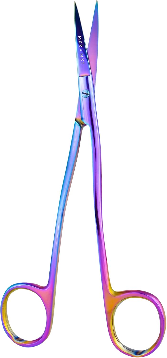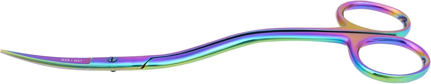 - ✂️ A Hand-Crafted Experience - featuring 6.1 inches in total length of quality steel, a smooth and sleek rainbow finish, a long thin comfortable ergonomic double bend handle and a sharp needle point blade with a protective sheath.