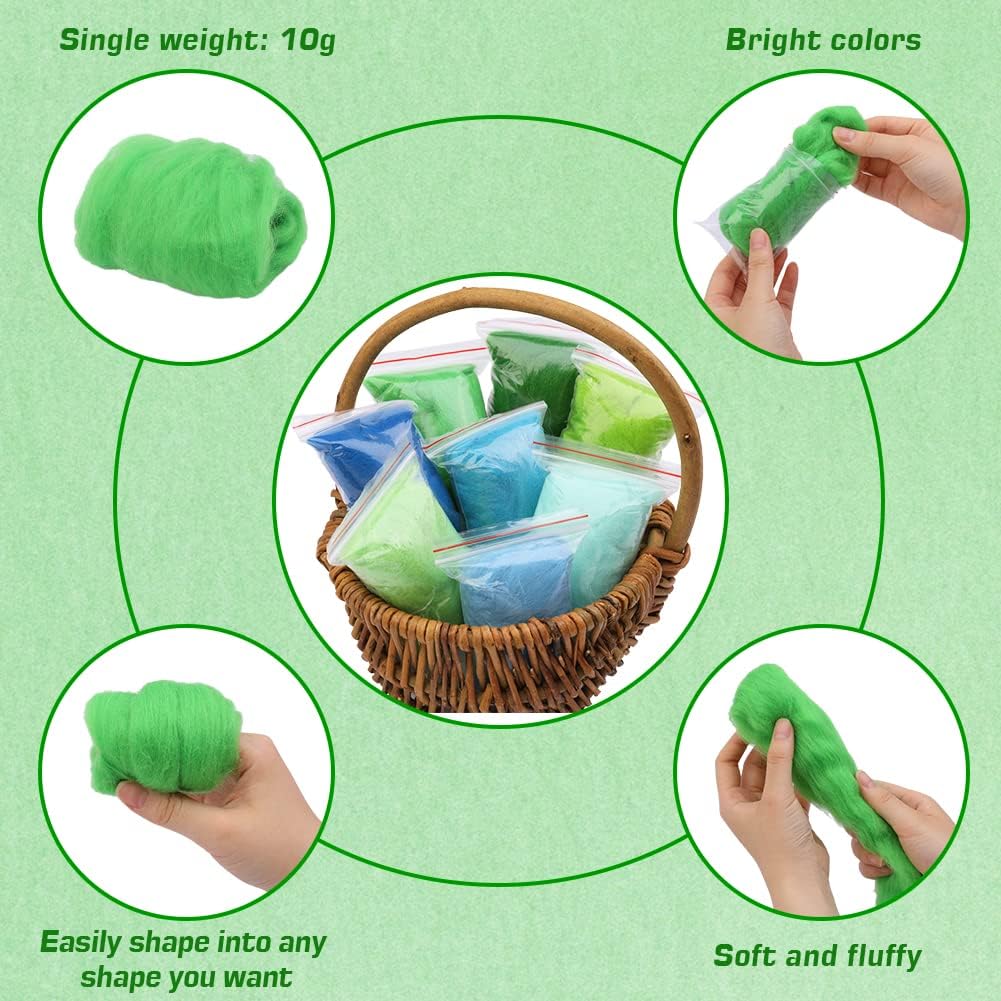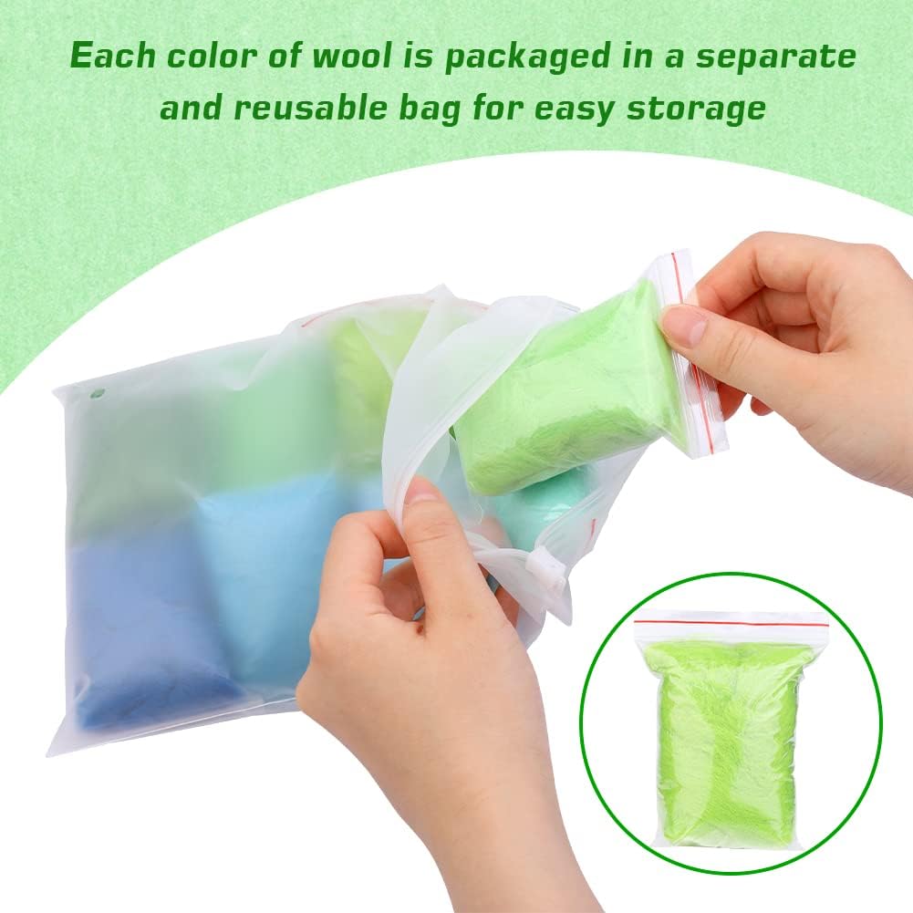 - ROVING FELTING: Come with wool roving in different color, each color is individually packaged in a clear and resealable bag, approximately 10 gram weight per color