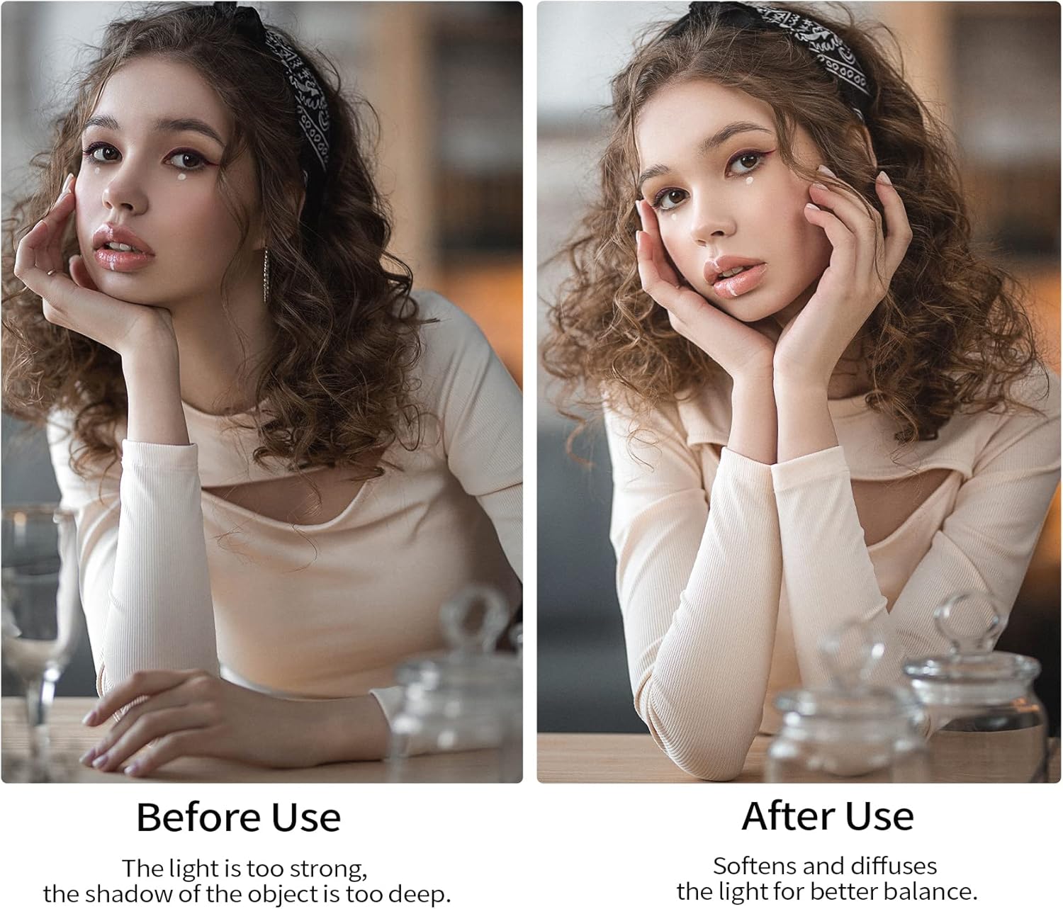 - This pop-out diffuser is effective to soften the light output, and has strong light transmission, creating a soft natural lighting effect.Ideal for portrait, children photography and online product photography.