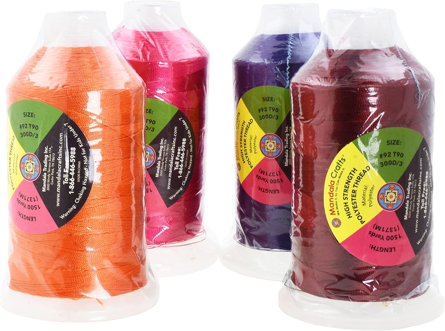 Mandala Crafts Maroon Purple Orange Hot Pink Heavy Duty Thread - 6000 Yds Tex 90 Thread - Bonded Polyester Thread Outdoor Marine Upholstery Threads