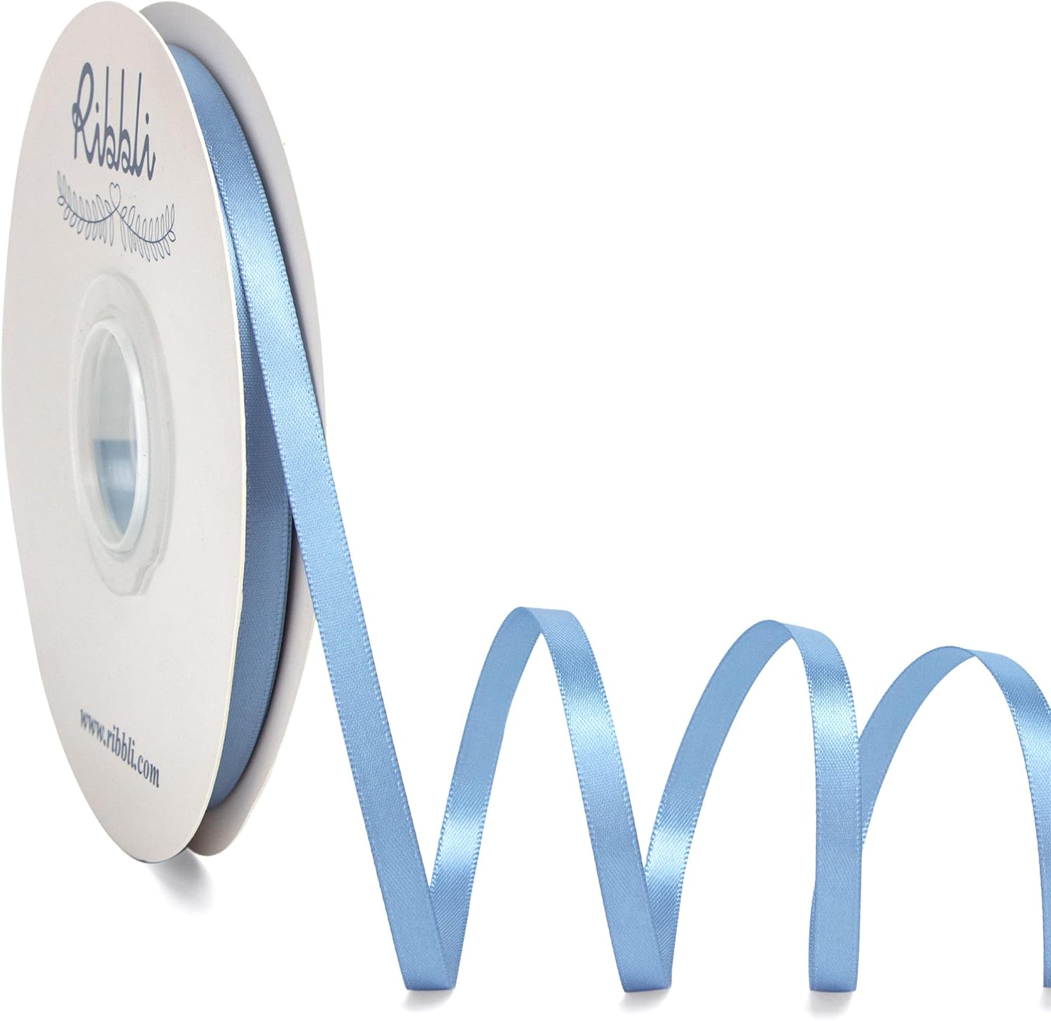 Ribbli Dusty Blue Satin Ribbon,Double Faced Satin 1/4 inch x Continuous 50 Yards,Dusty Blue Ribbon Use for Bows Bouquet,Gift Wrapping,Wedding Decoration,Floral Arrangement
