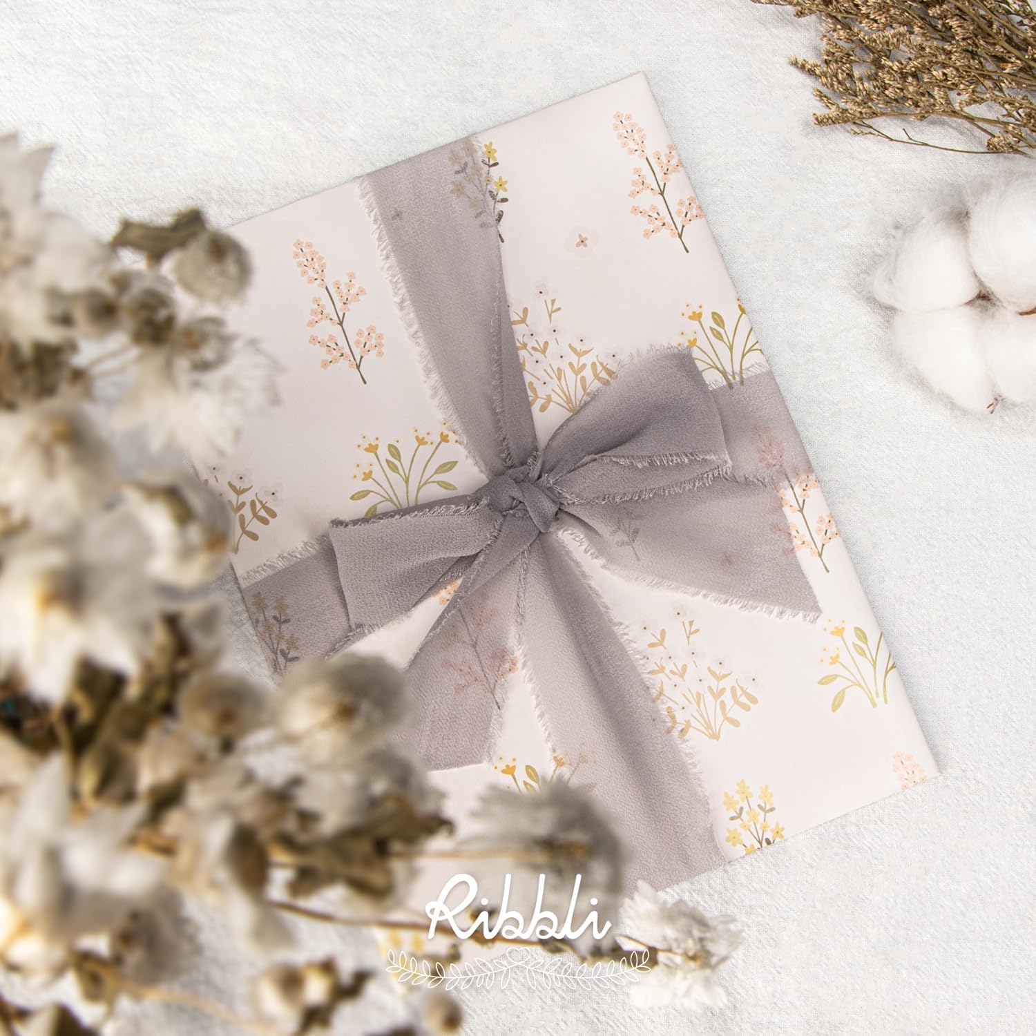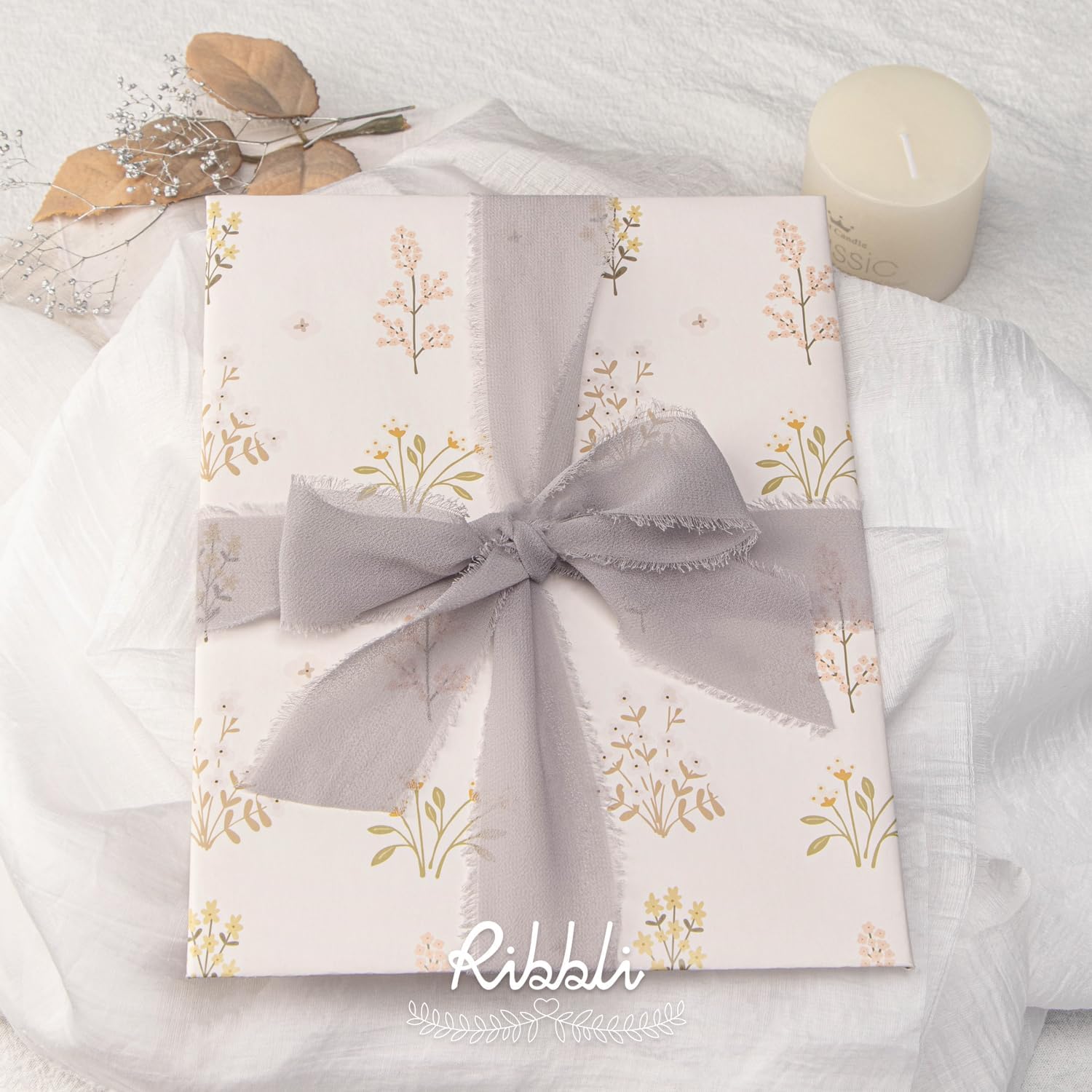 Ribbli Light Grey Chiffon Ribbon 1-1/2 inch x 20 Yard Handmade Fringe Chiffon Silk Ribbon for Wedding Invitations, Bridal Bouquets Wrapping, Flower Arrangement Decoration