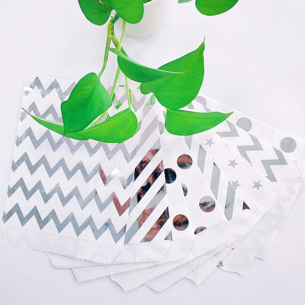 - Color and Size: Silver candy buffet bags 5 inches wide and 7 inches high. The size allows for convenience in packing and gifting, ensuring your treats stand out
