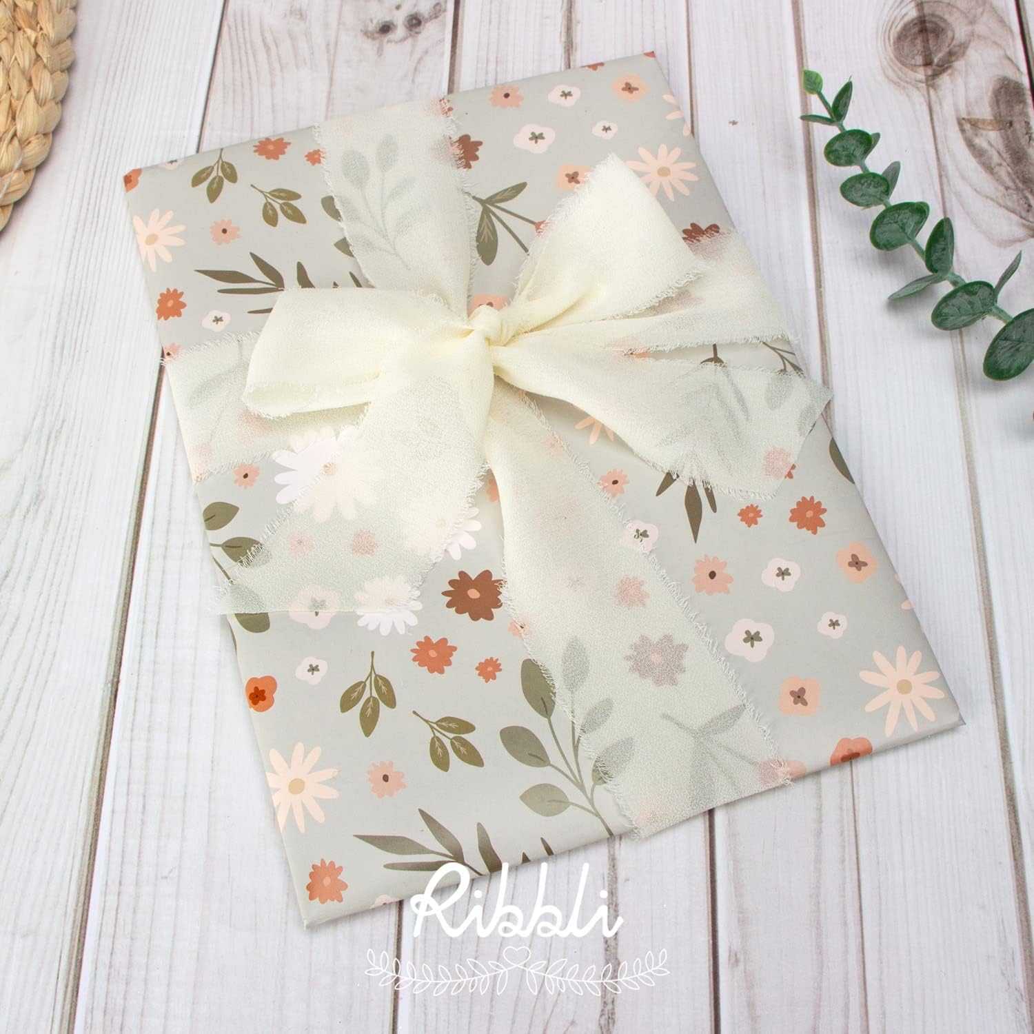 Ribbli Ivory Chiffon Ribbon 1-1/2 inch x 30 Yard Handmade Fringe Chiffon Ivory Silk Ribbon,Cream Ribbon for Wedding Invitations, Bridal Bouquets Wrapping, Flower Arrangement Decoration